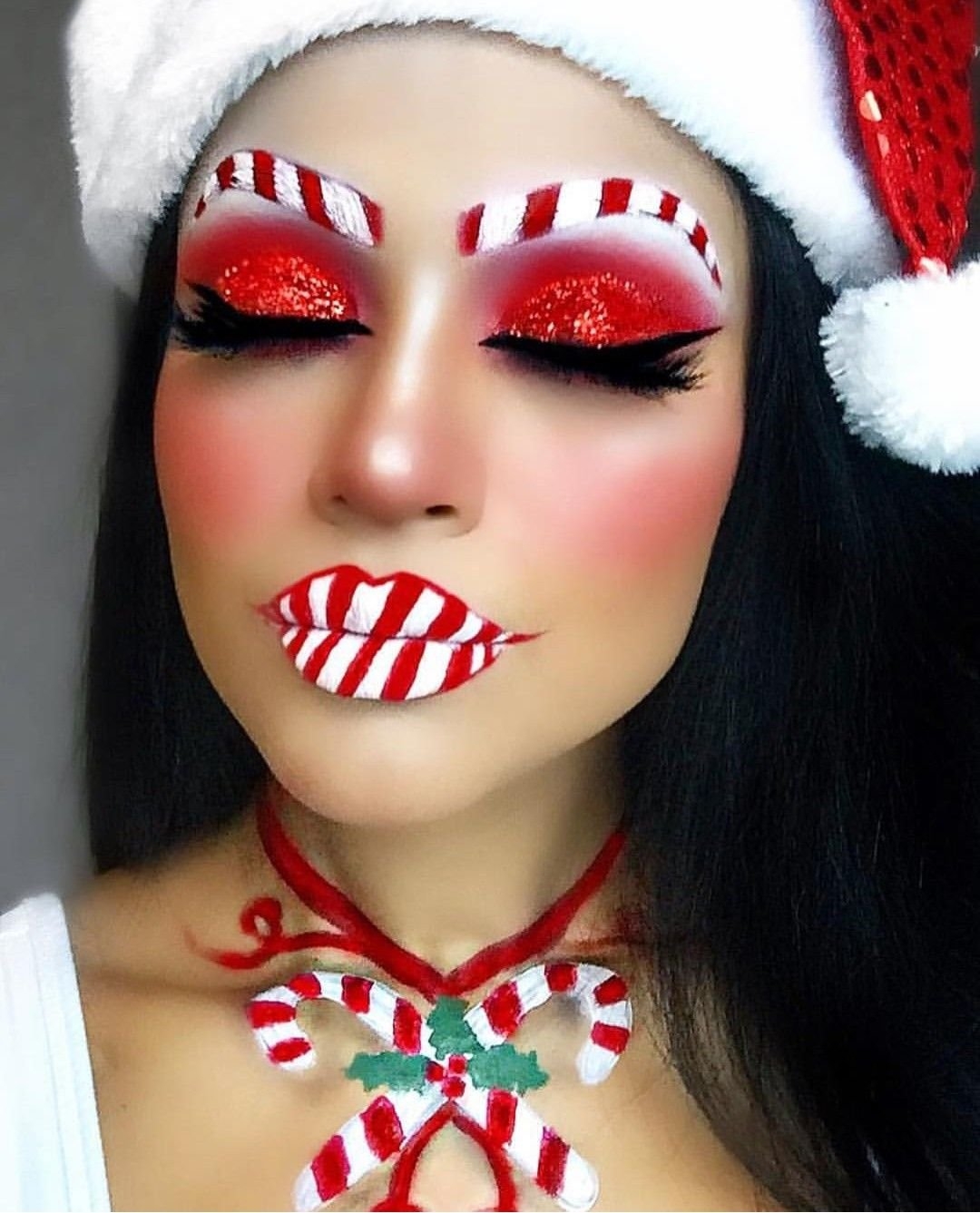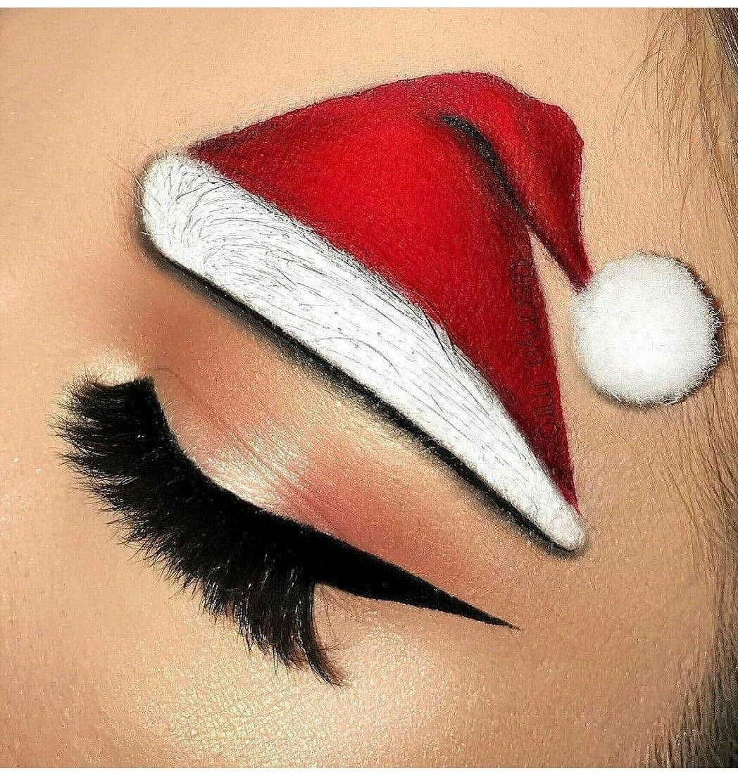 Новогодний макияж с шапочкой