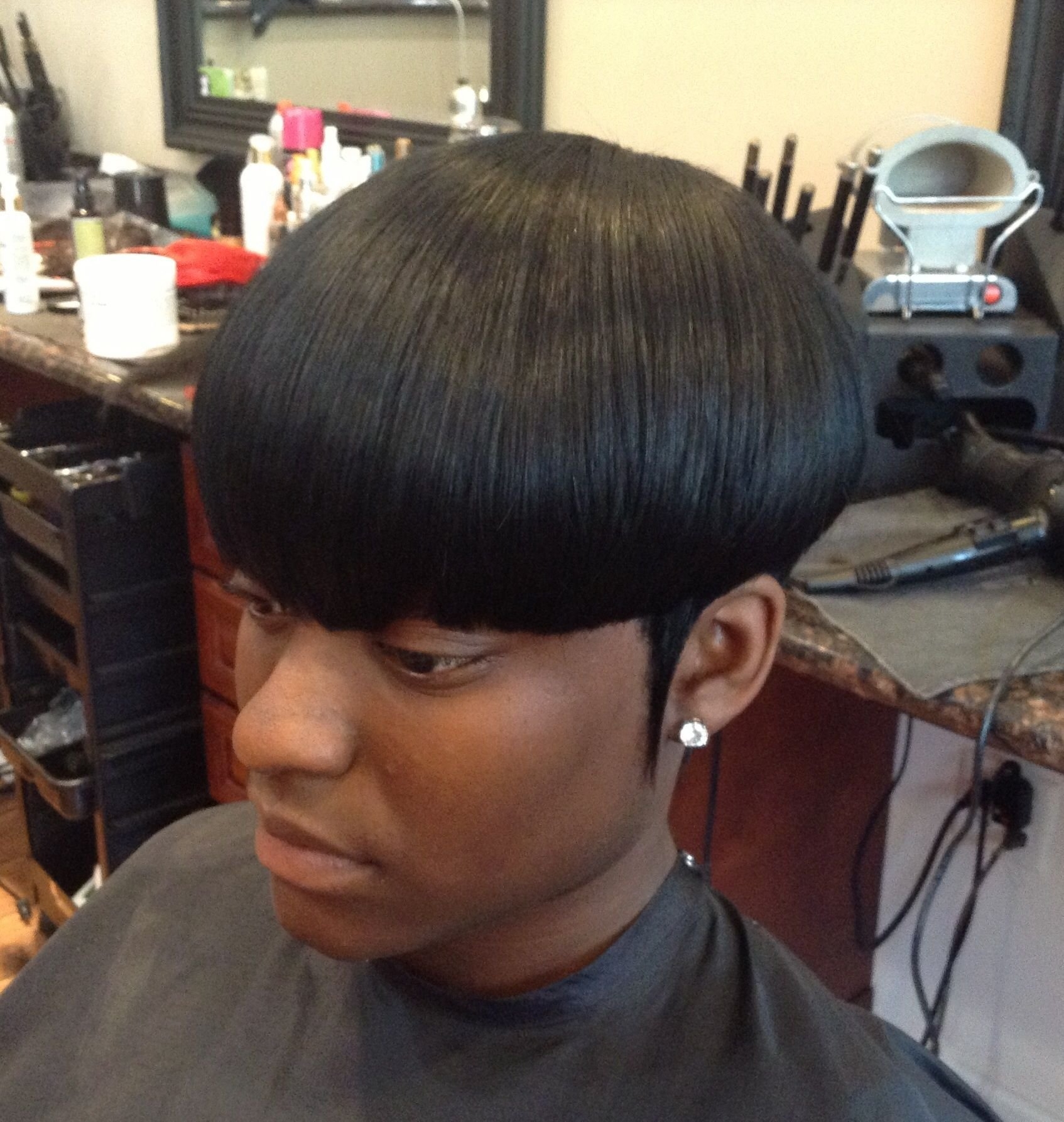 Прическа под горшок женская