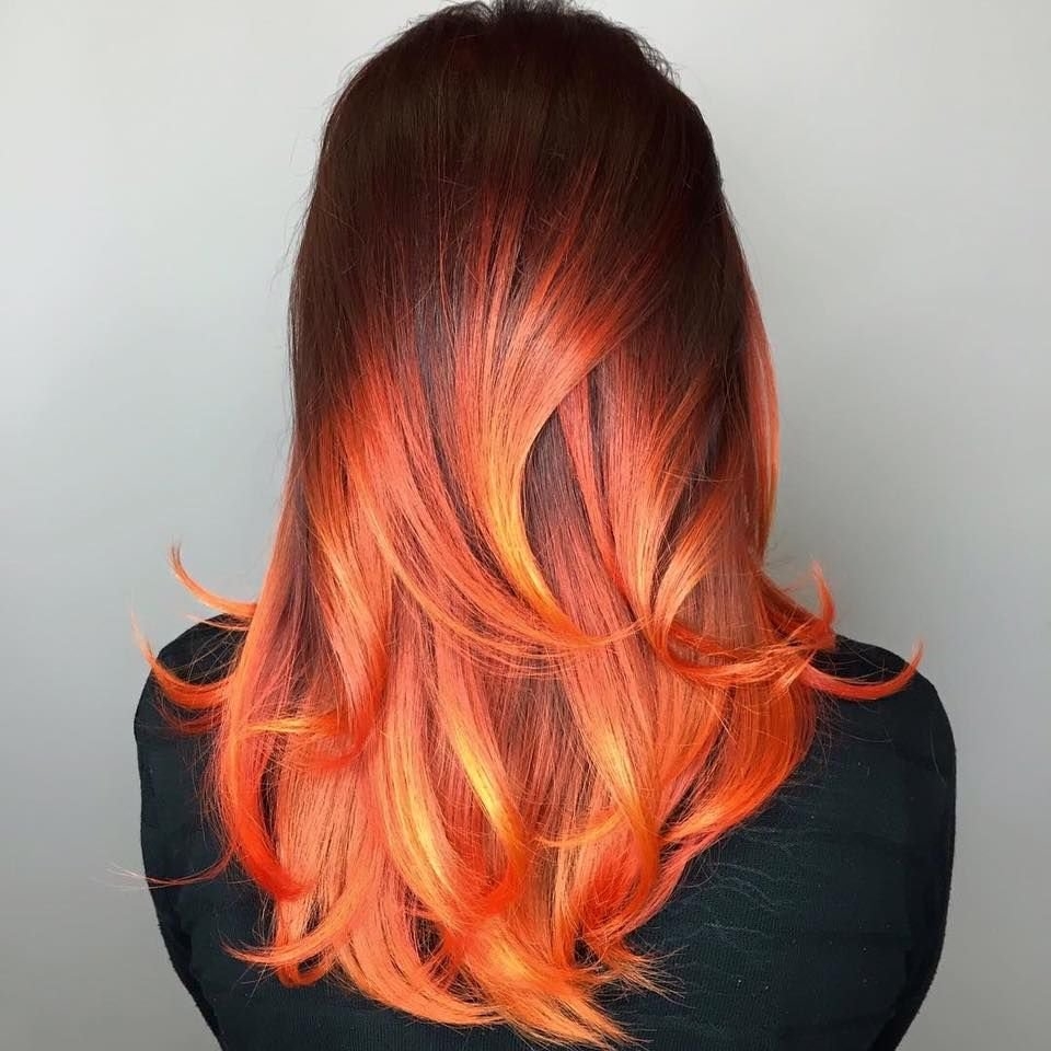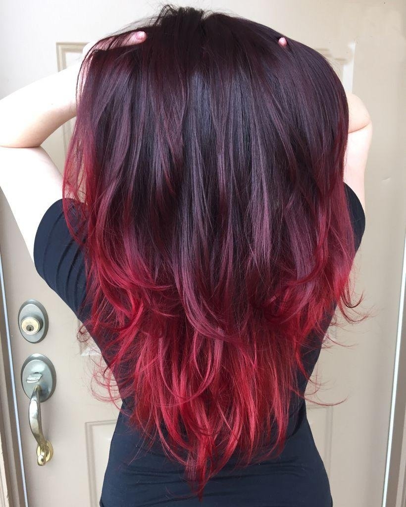 Красно черное омбре на длинные волосы