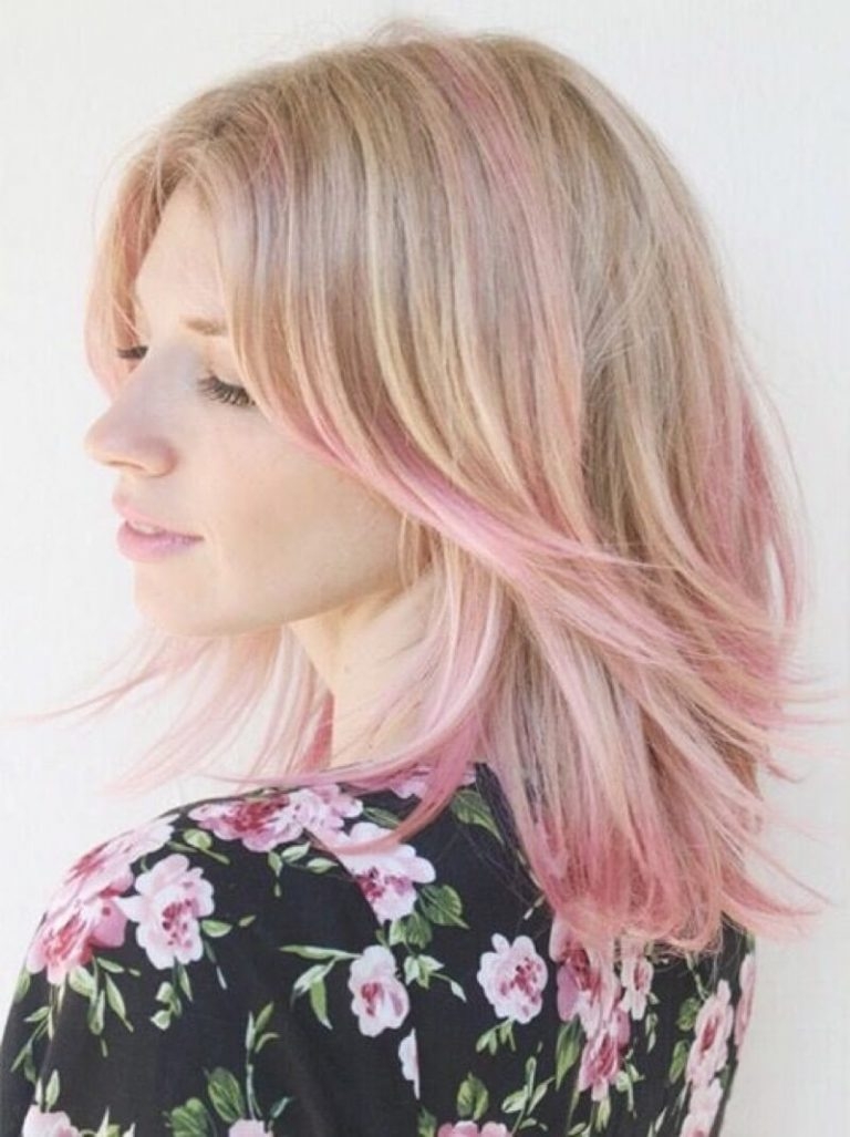 Окрашивание волос с розовыми прядями