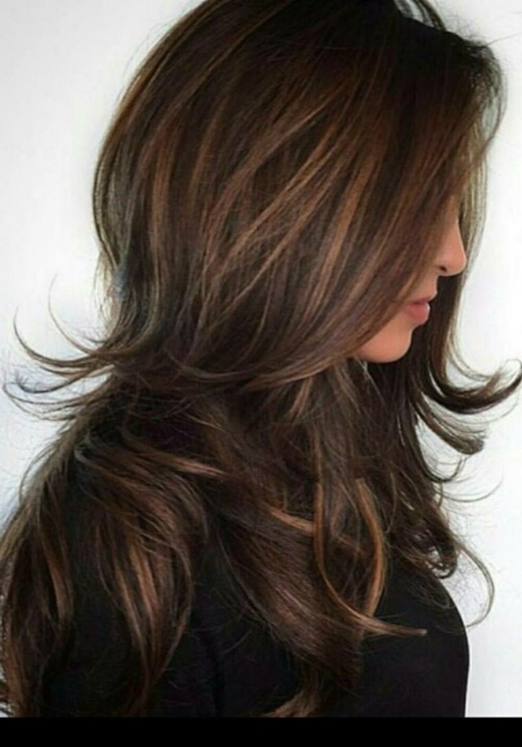 Каскад с мелированием на темные волосы