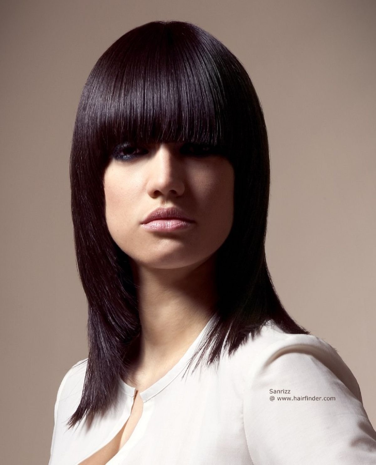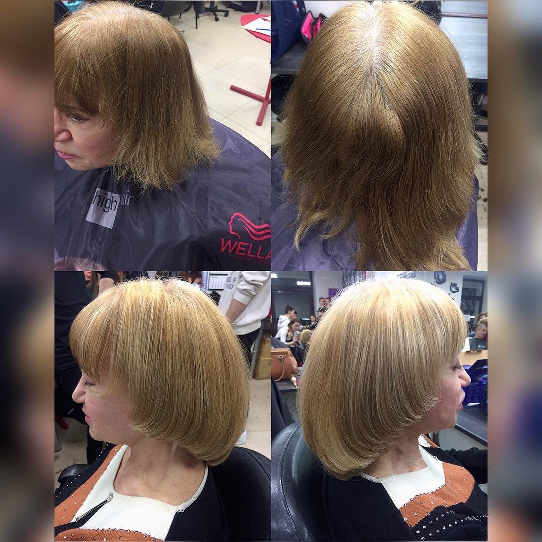 Стрижка сессон на длинные волосы с челкой для женщин после 50