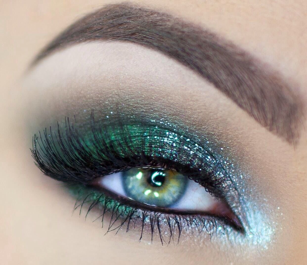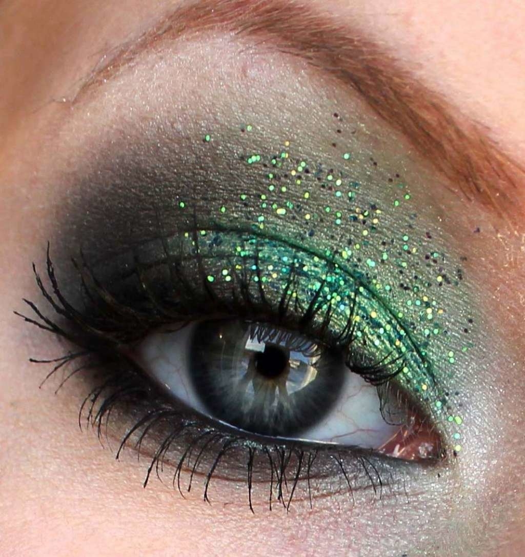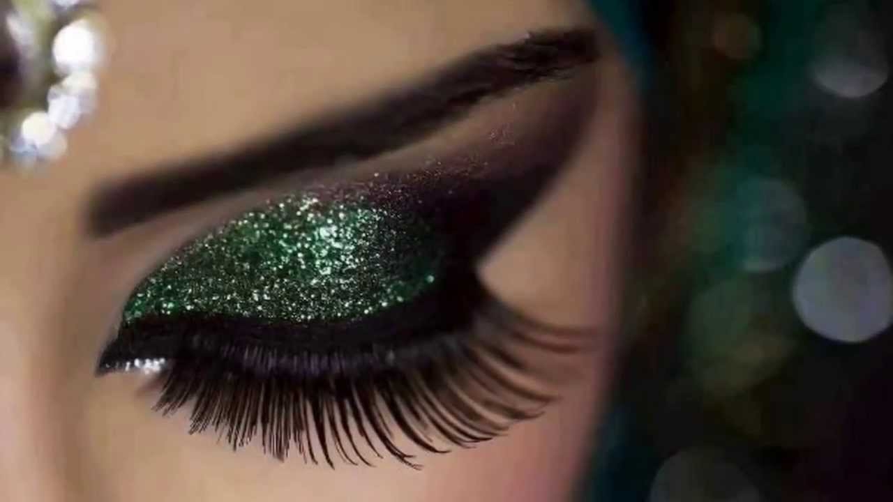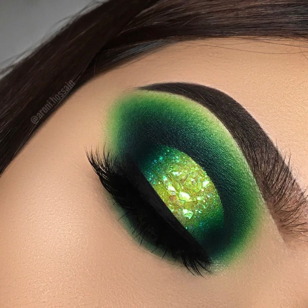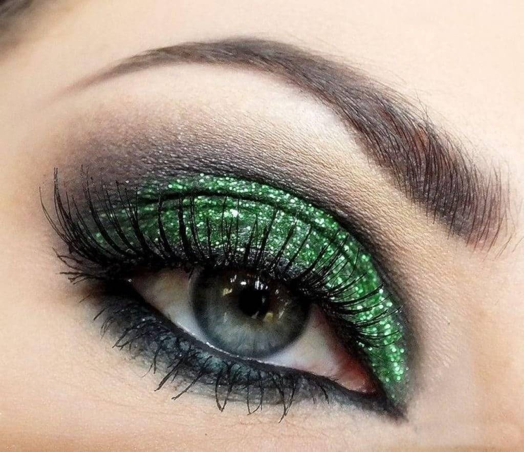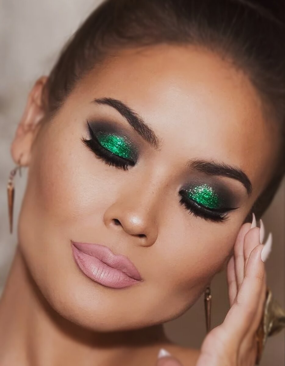 Макияж с зелеными блестками на глазах