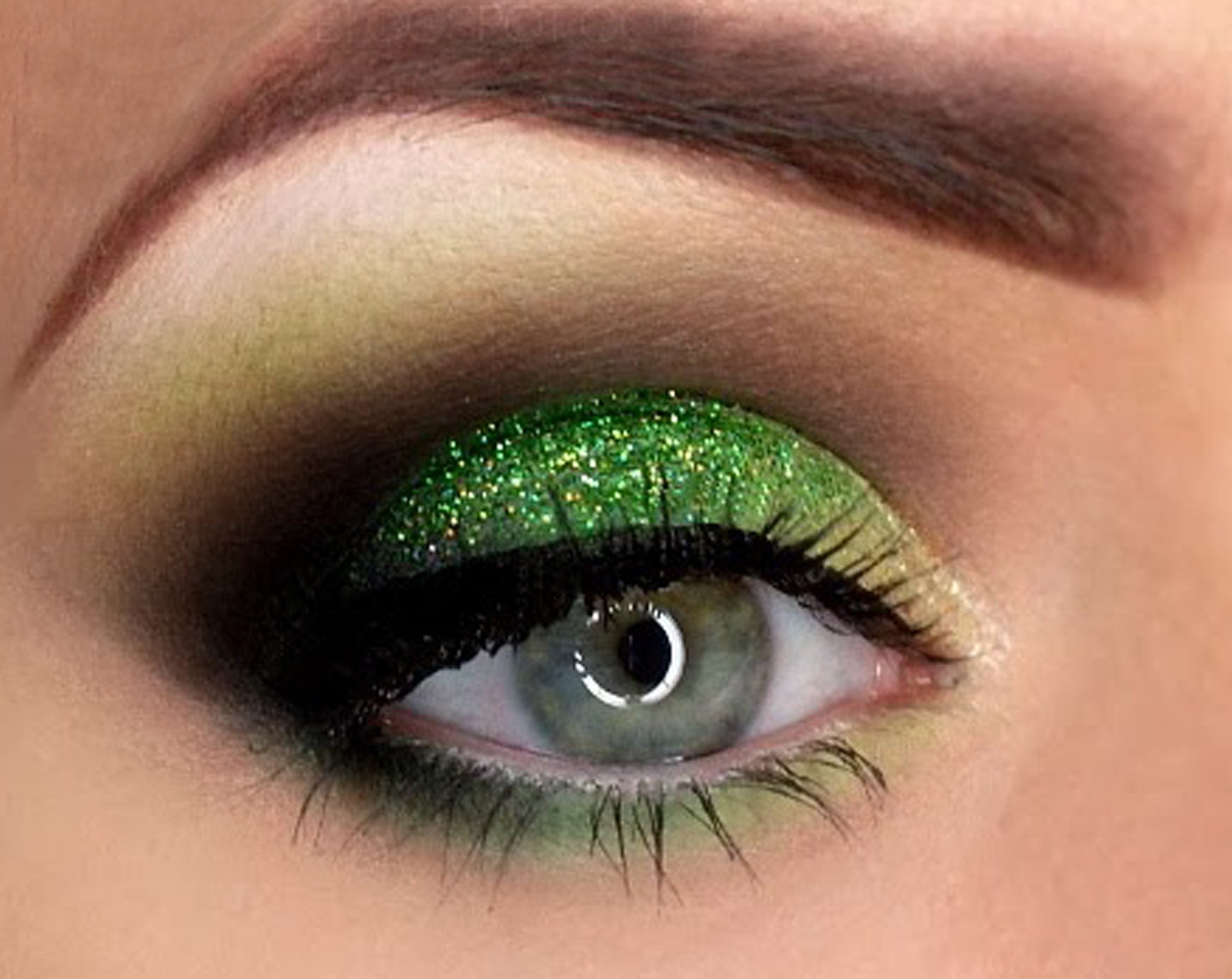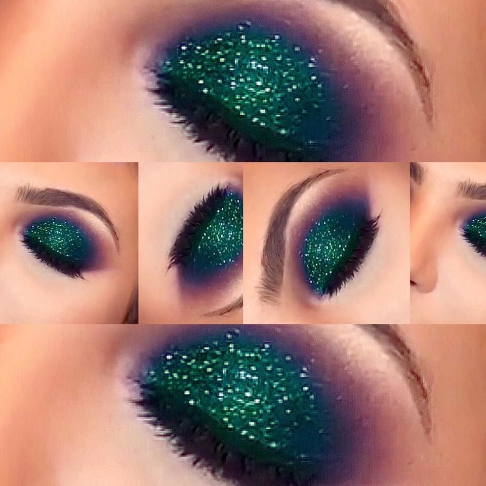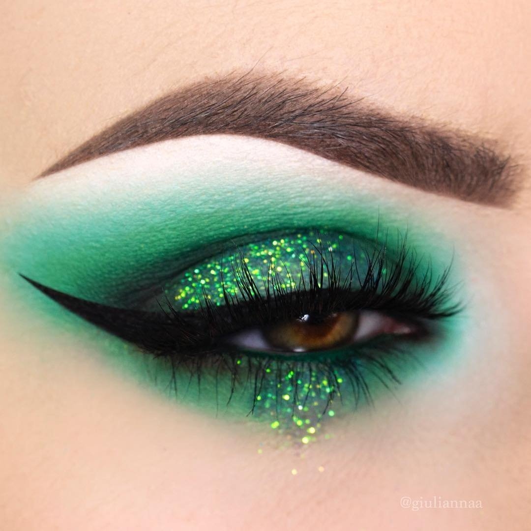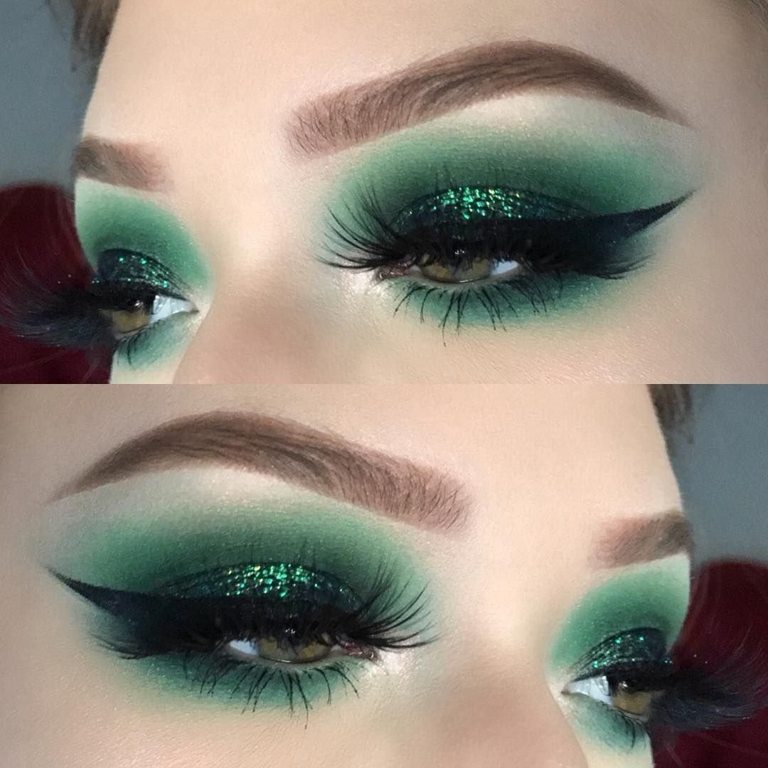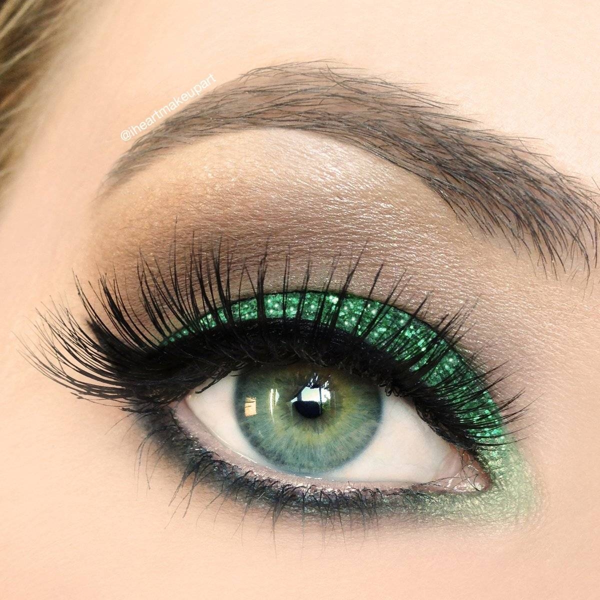 Макияж с зелеными блестками на глазах