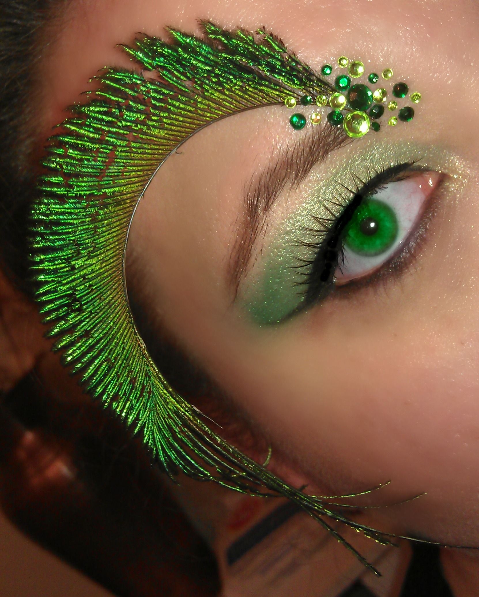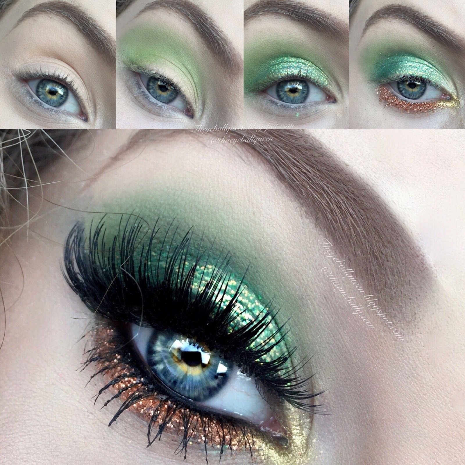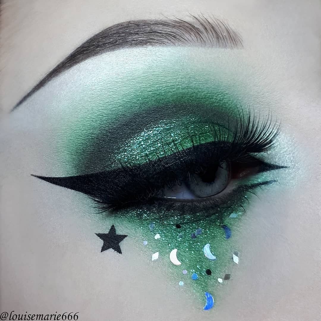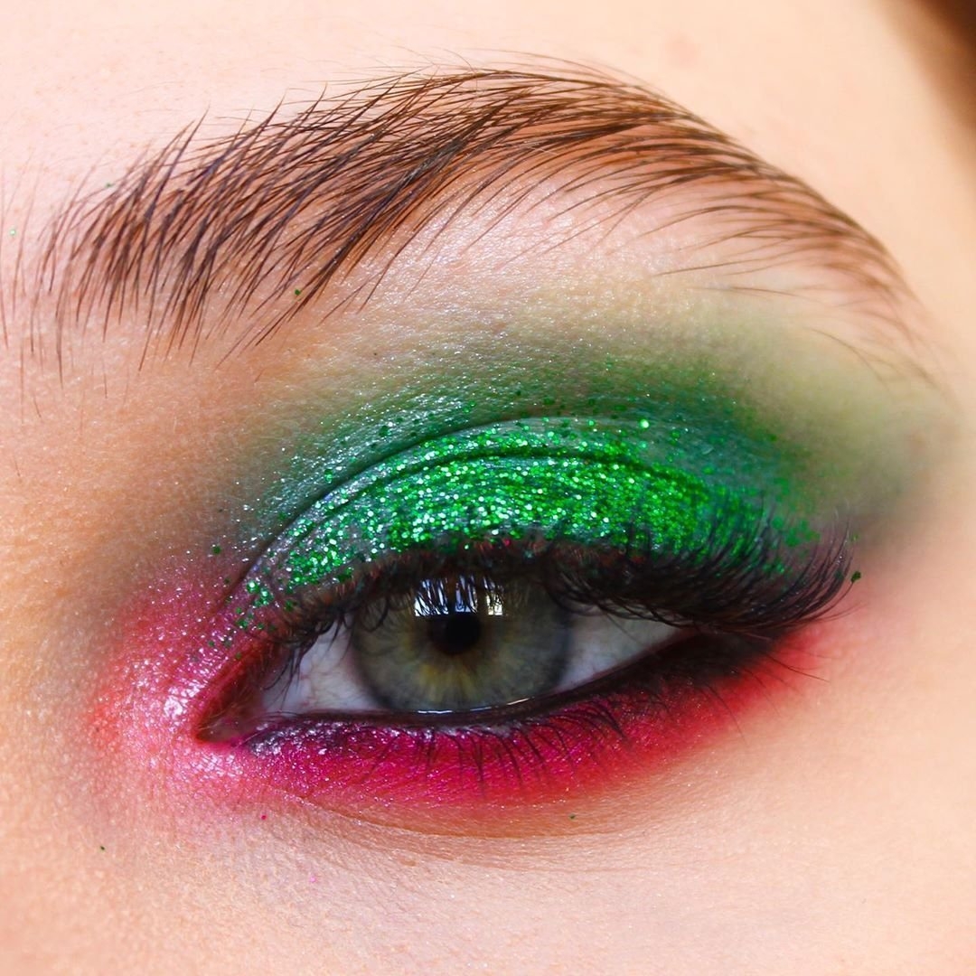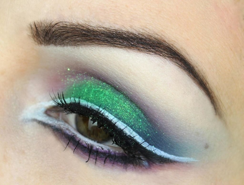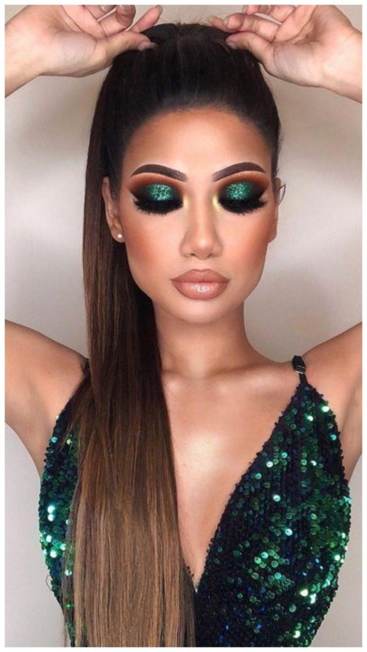 Макияж с зелеными блестками на глазах