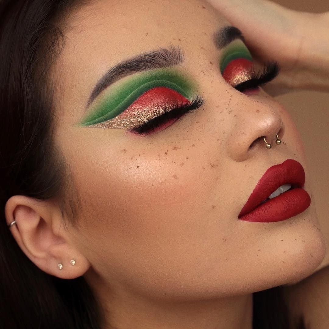 Красно зеленый макияж