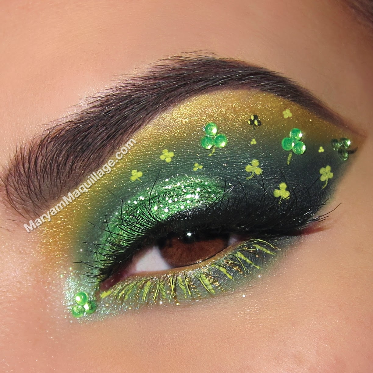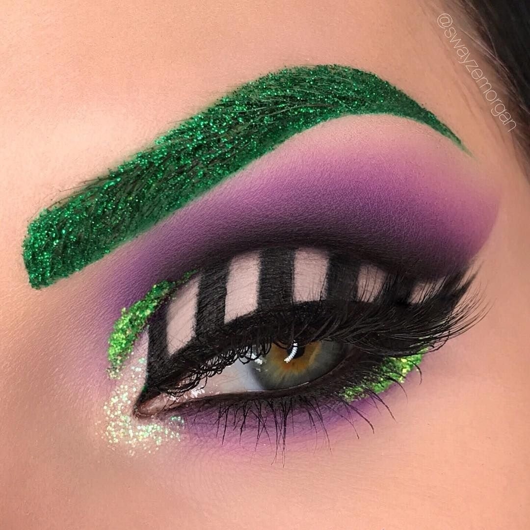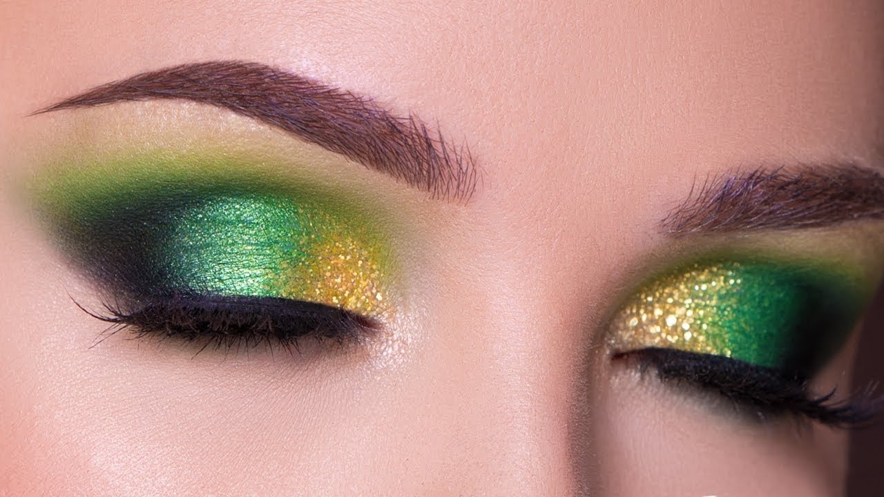 Макияж с зеленым глиттером