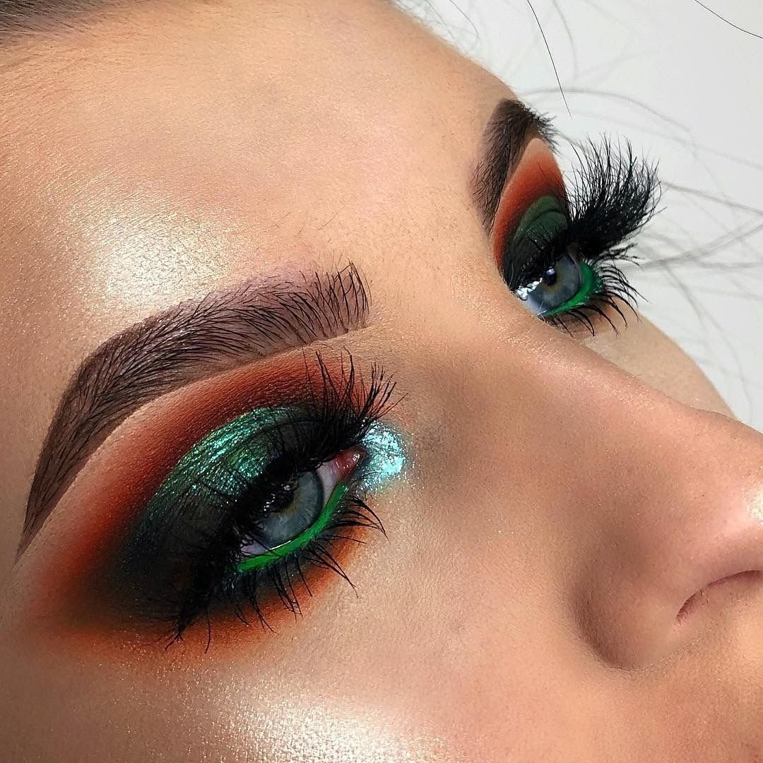 Оранжево зеленый макияж