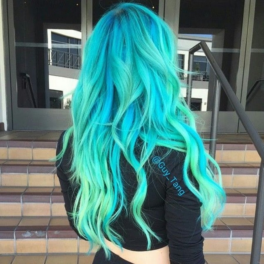 Зелено голубое окрашивание волос