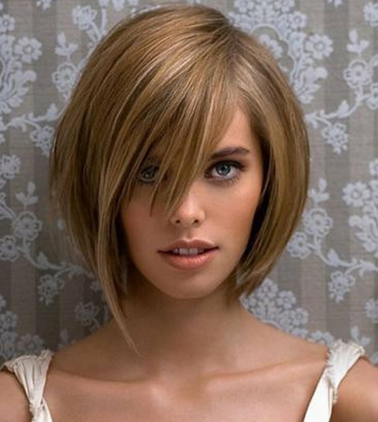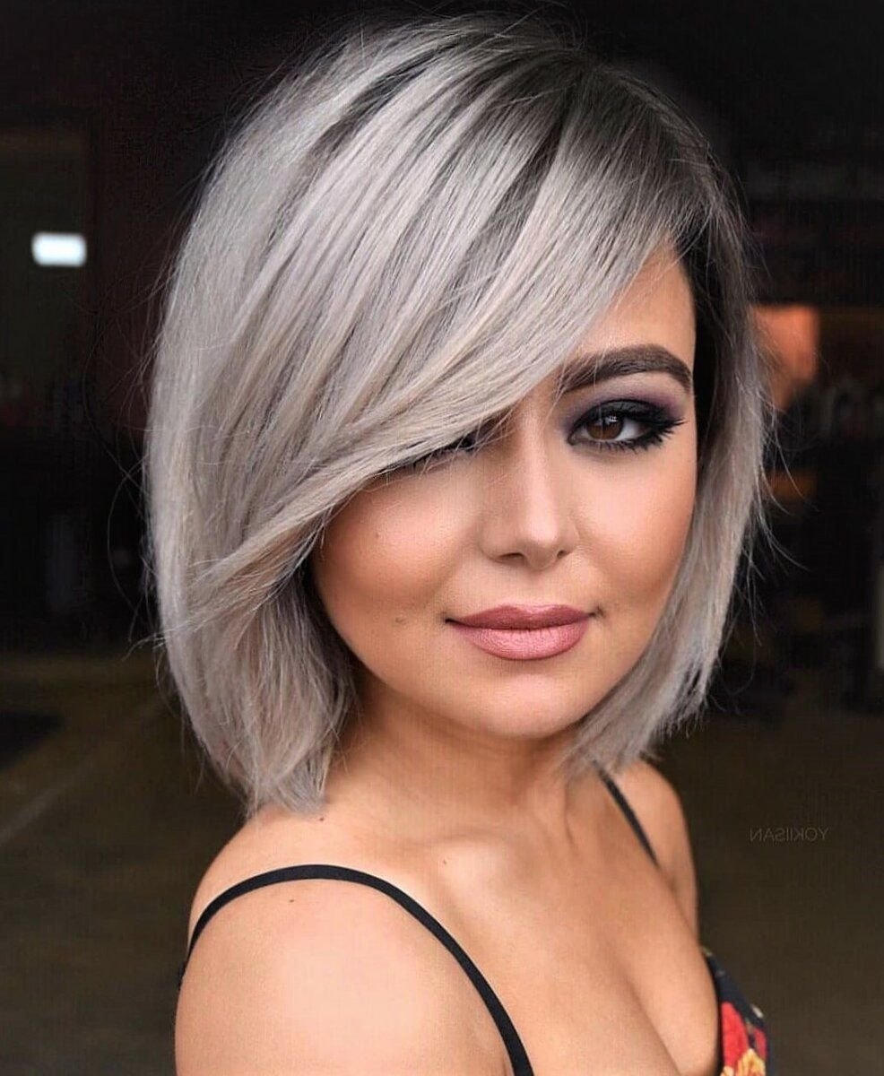 Стрижка каре асимметрия с челкой на круглое лицо