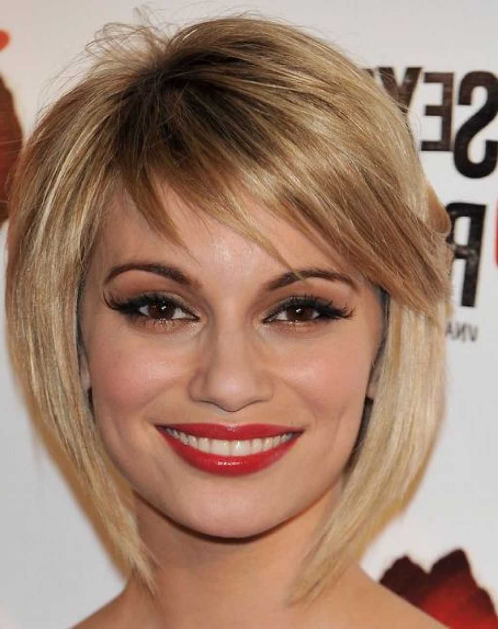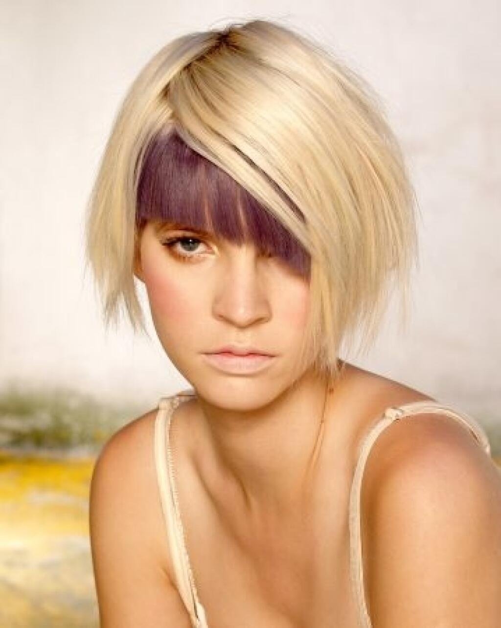 Стрижки с короткой косой челкой на средние волосы