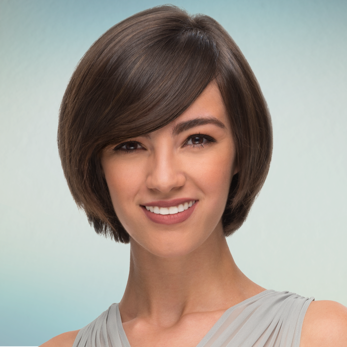 Градуированный Боб с косой челкой на короткие волосы