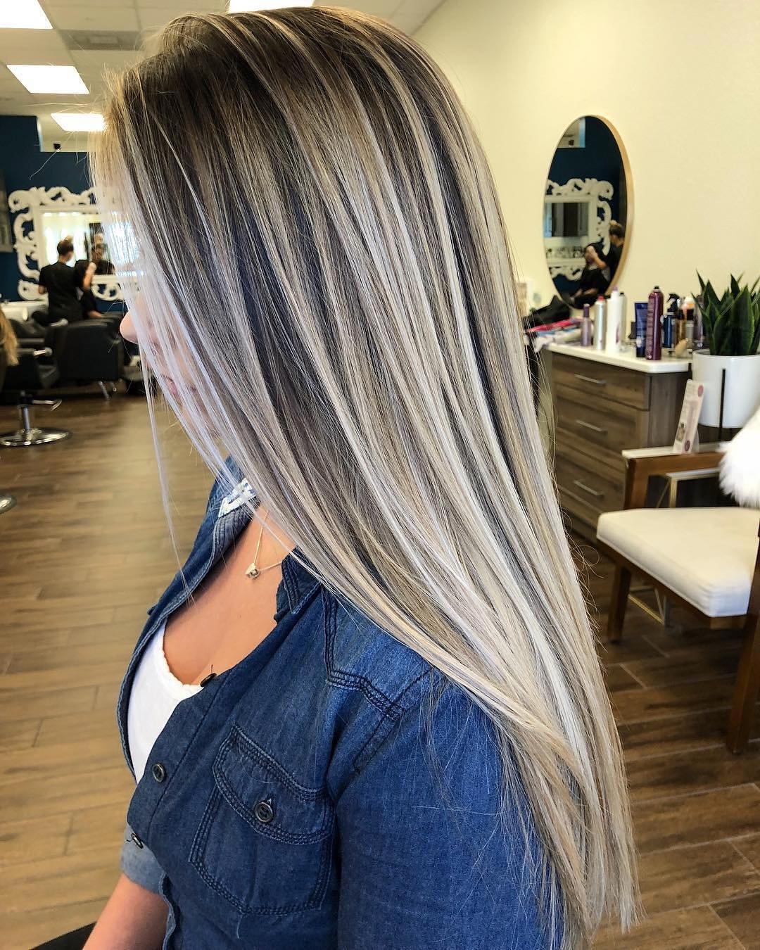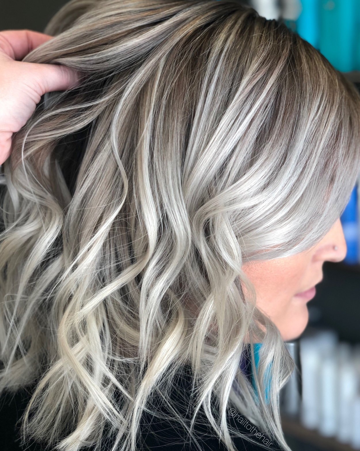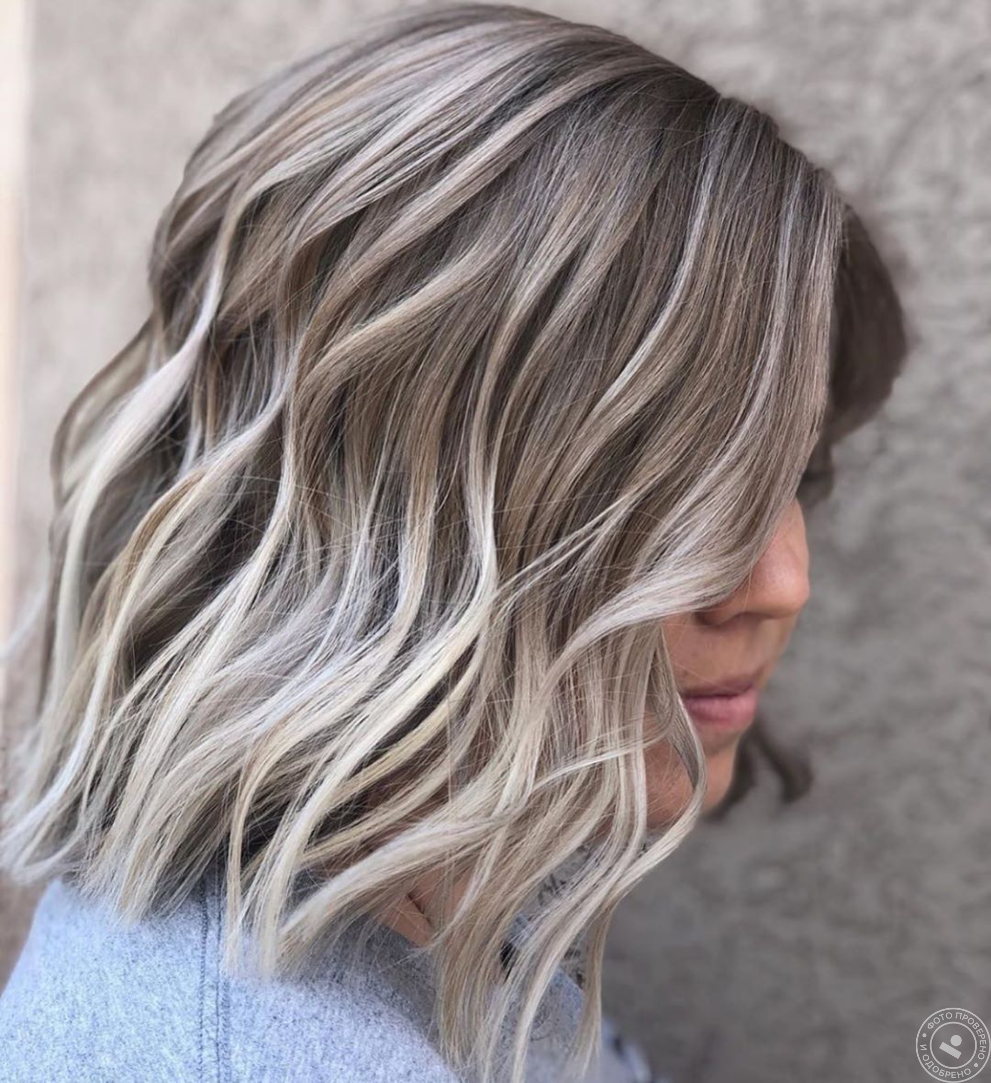 Мелирование с пепельным оттенком на средние волосы Каскад