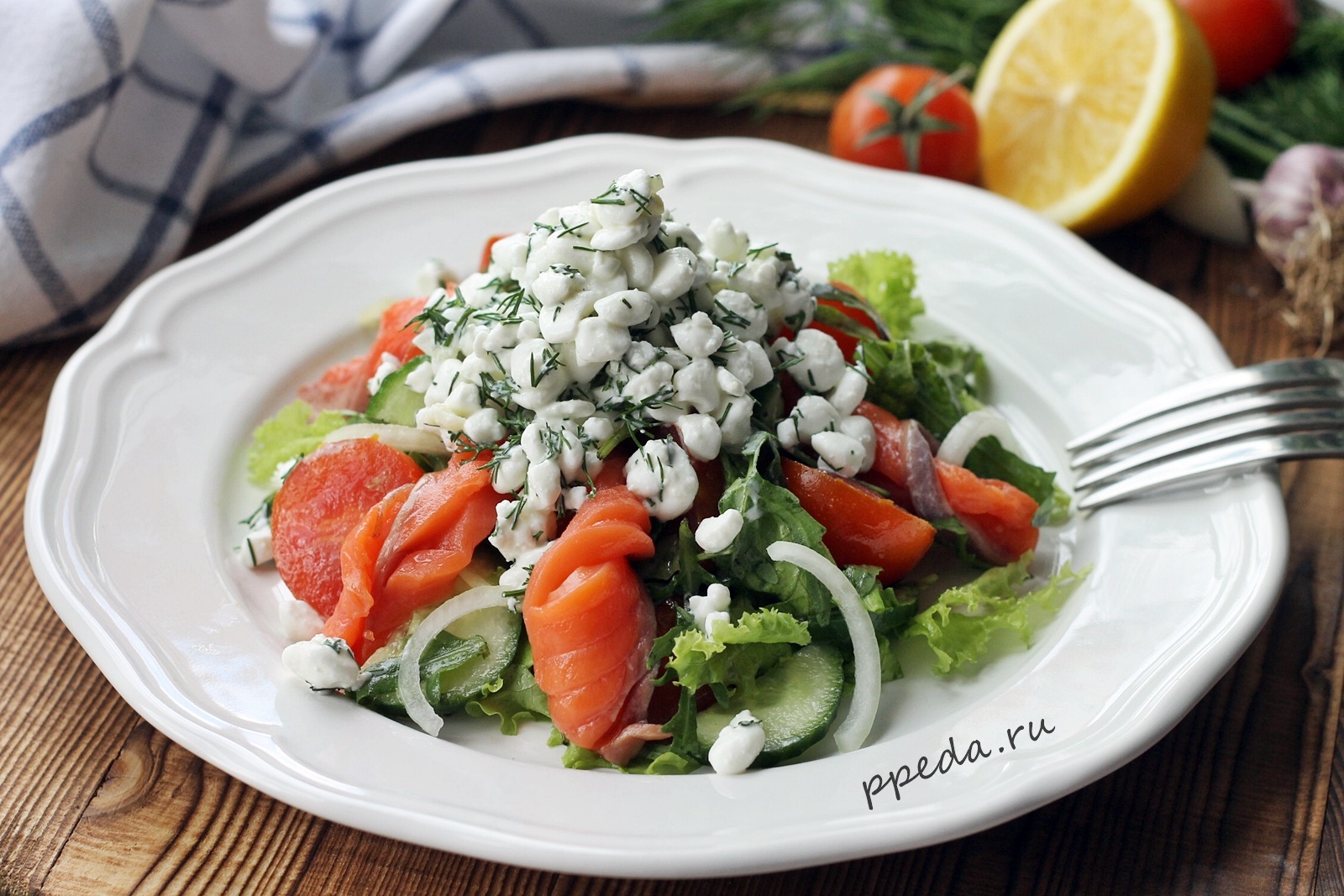Салат с творогом и овощами