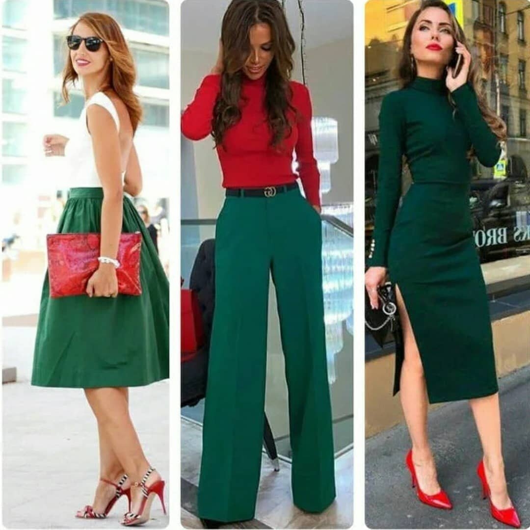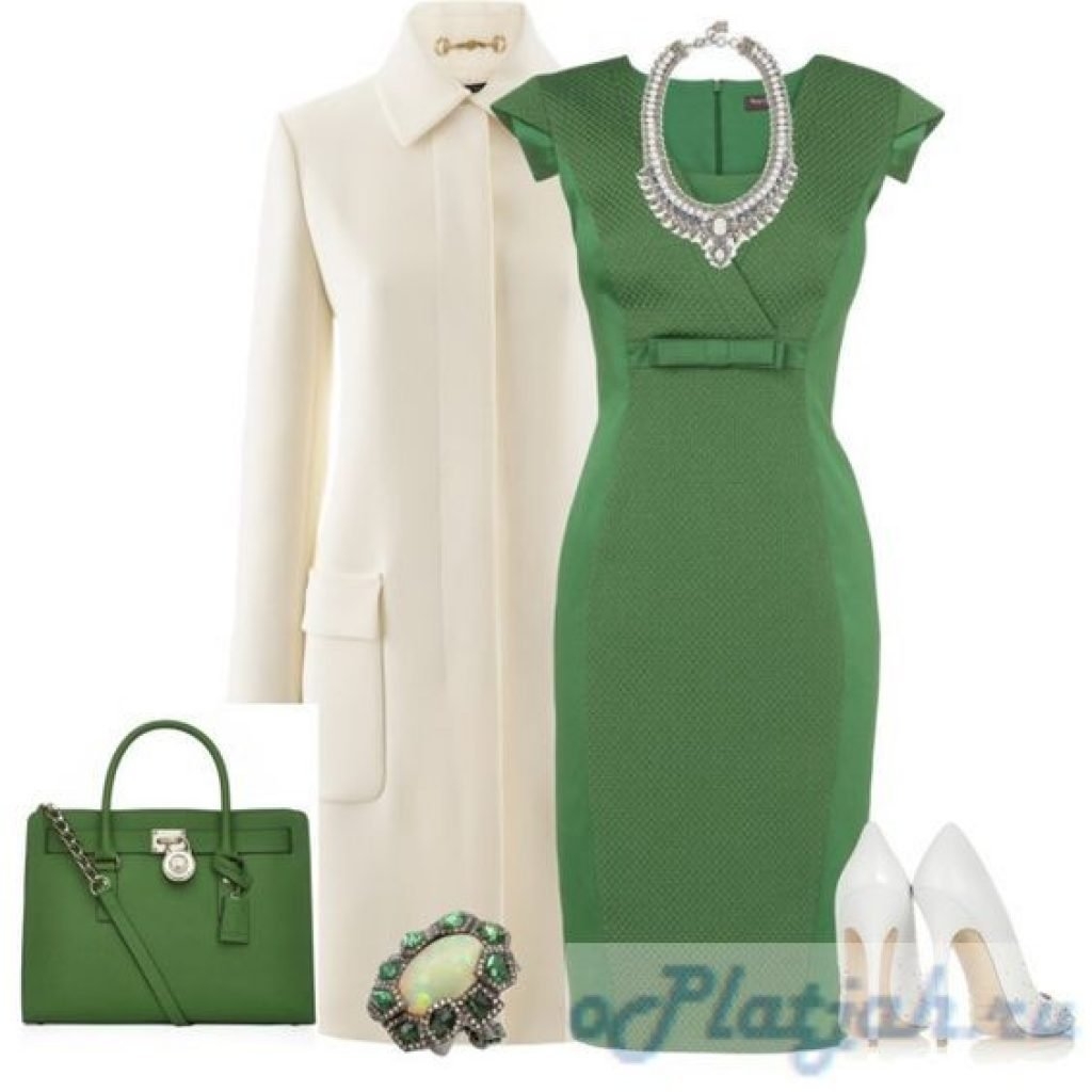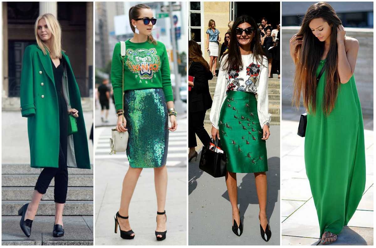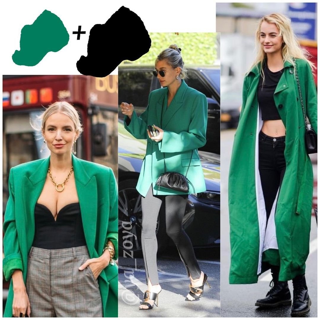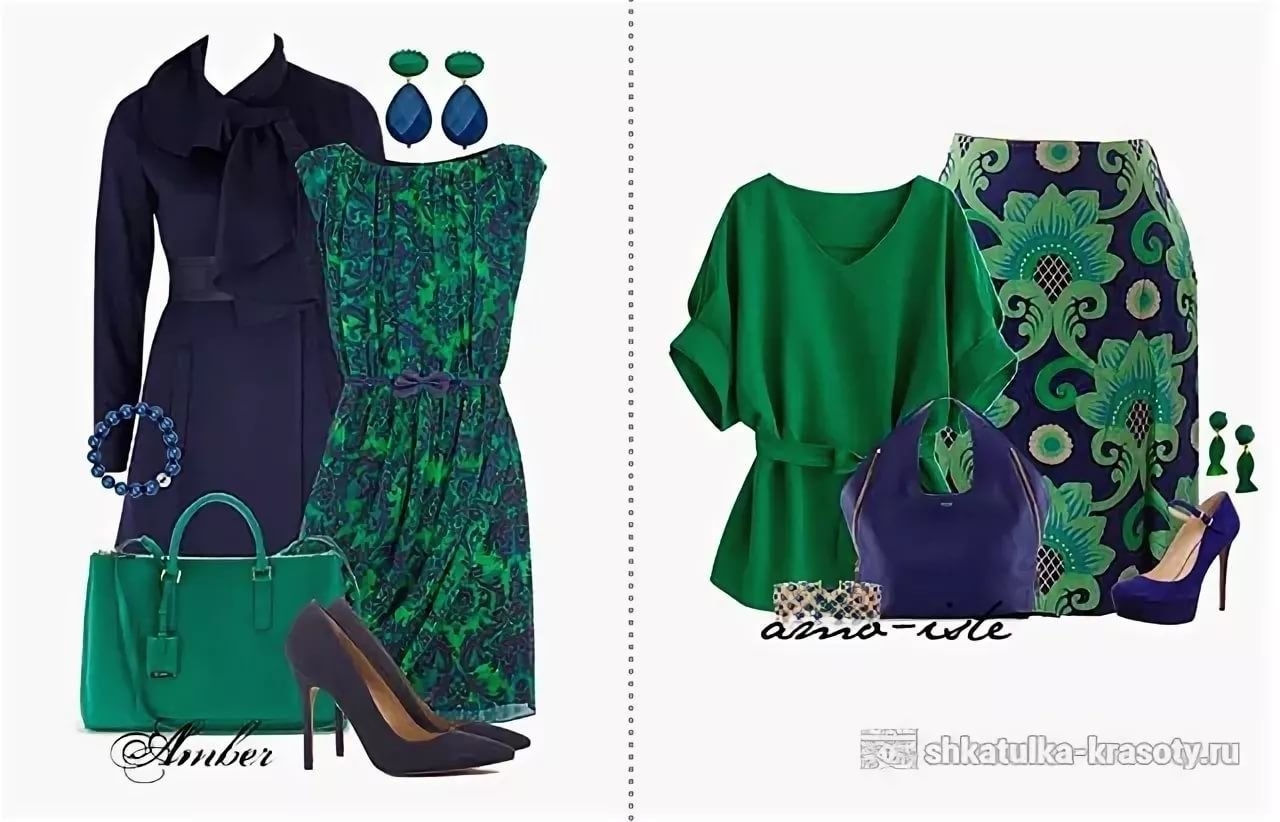Сочетание изумрудного цвета с черным в одежде полной девушке