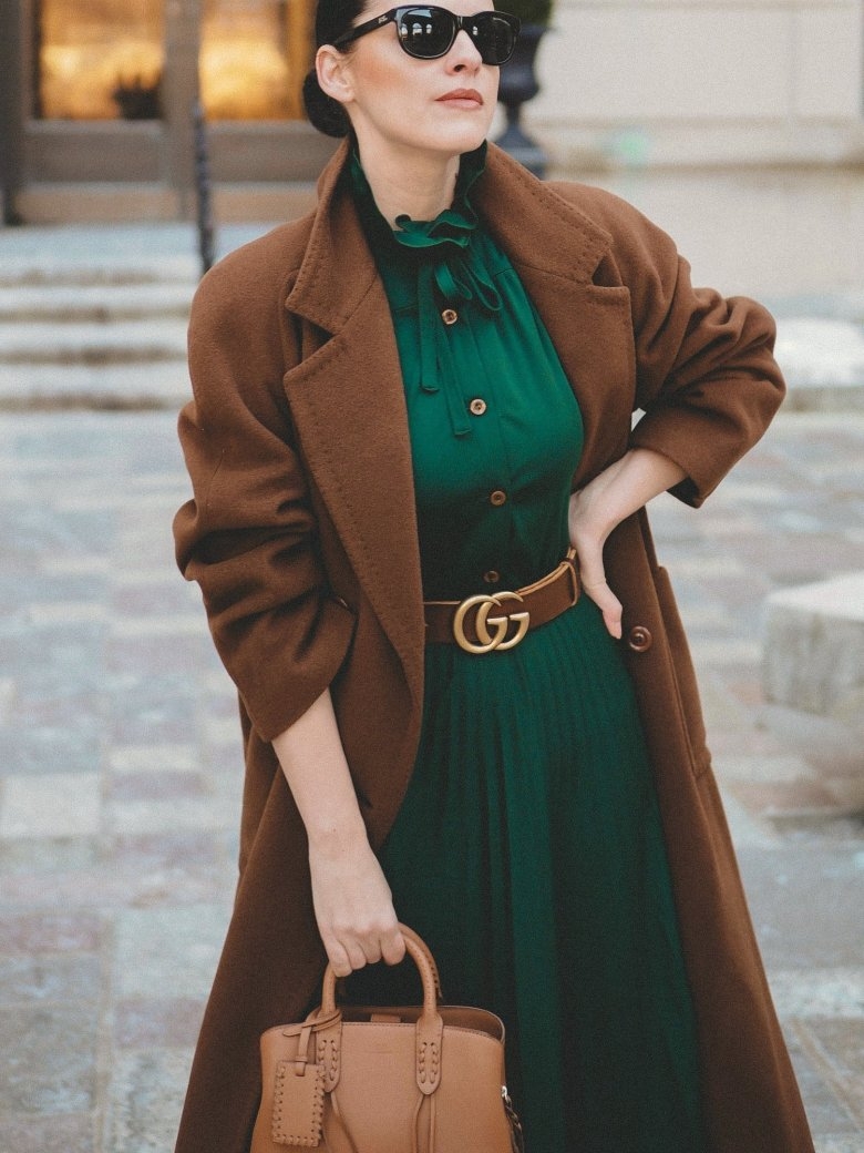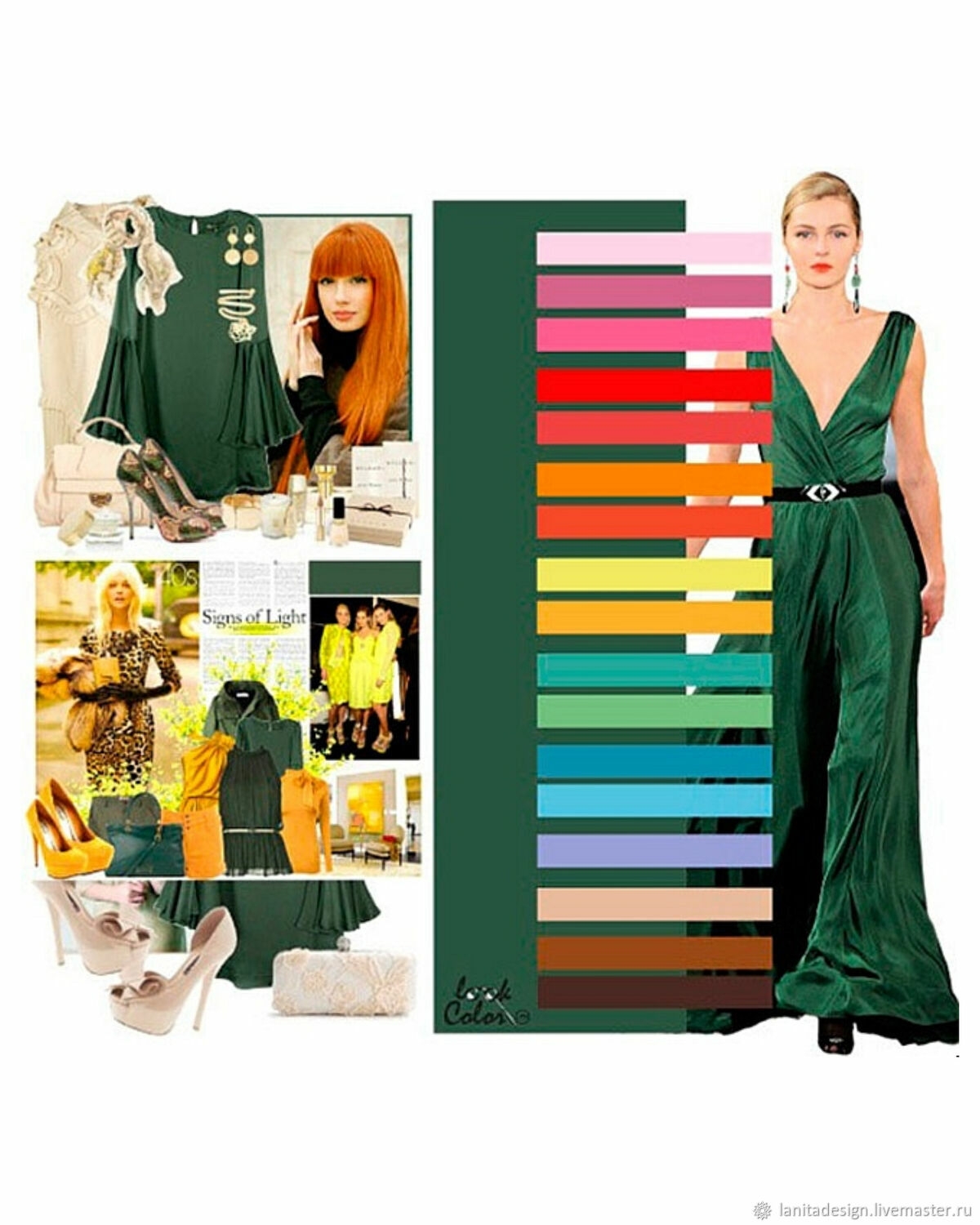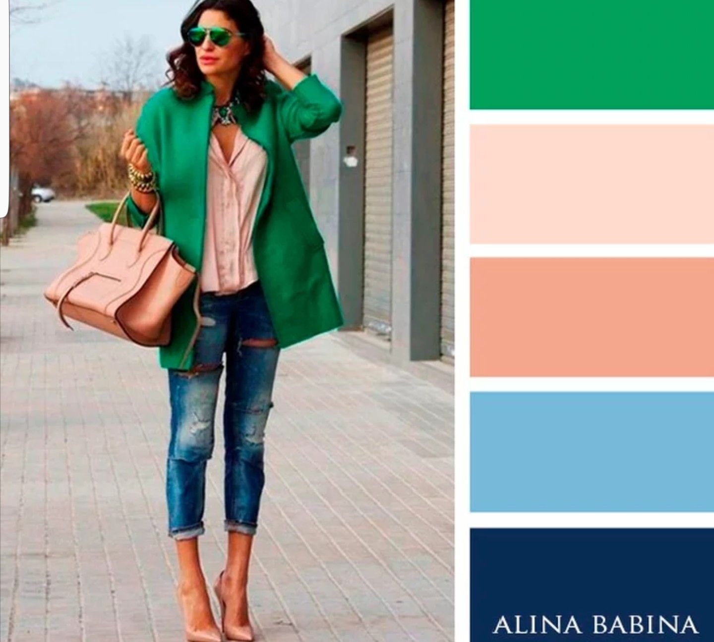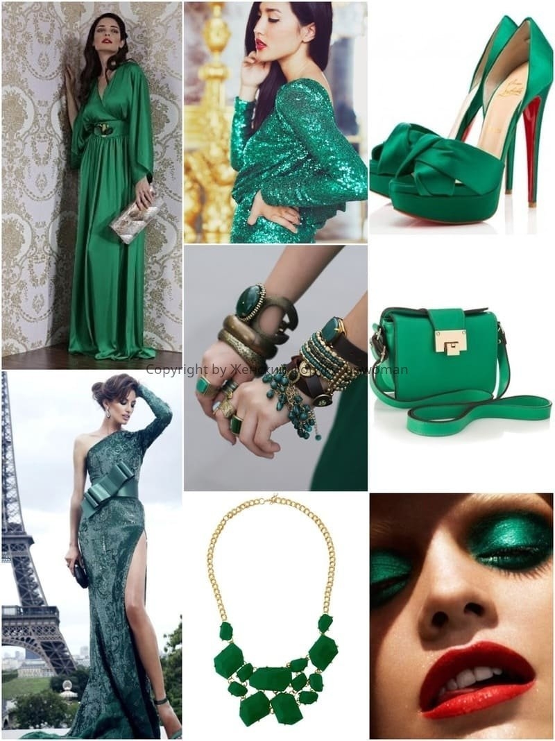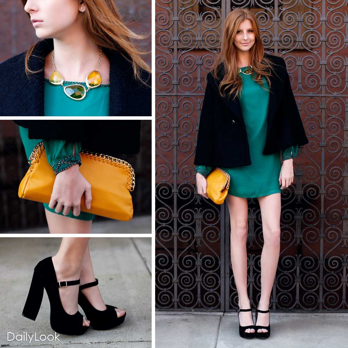Сочетание изумрудного цвета с черным в одежде полной девушке