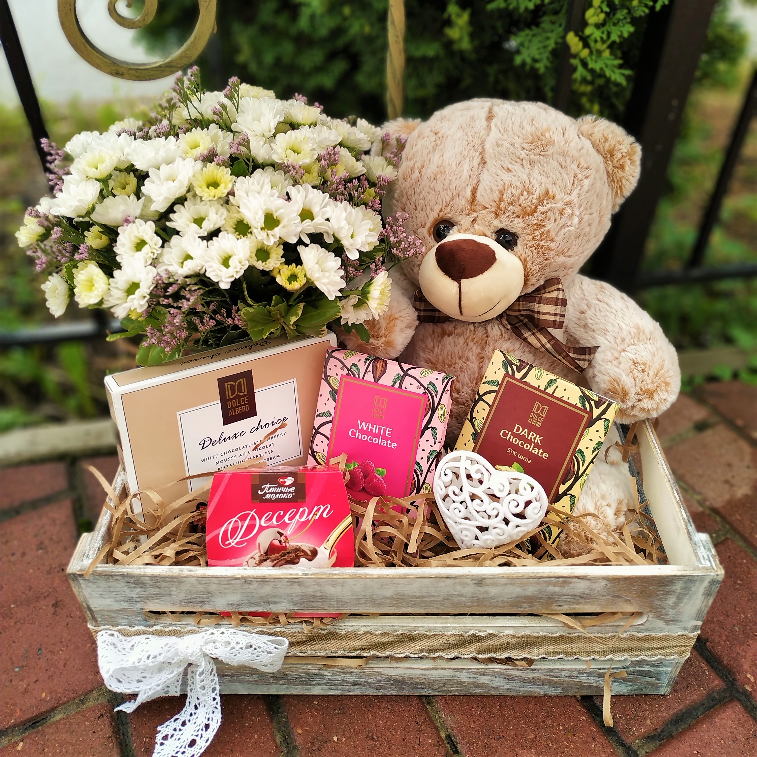 Коробка с цветами и конфетами