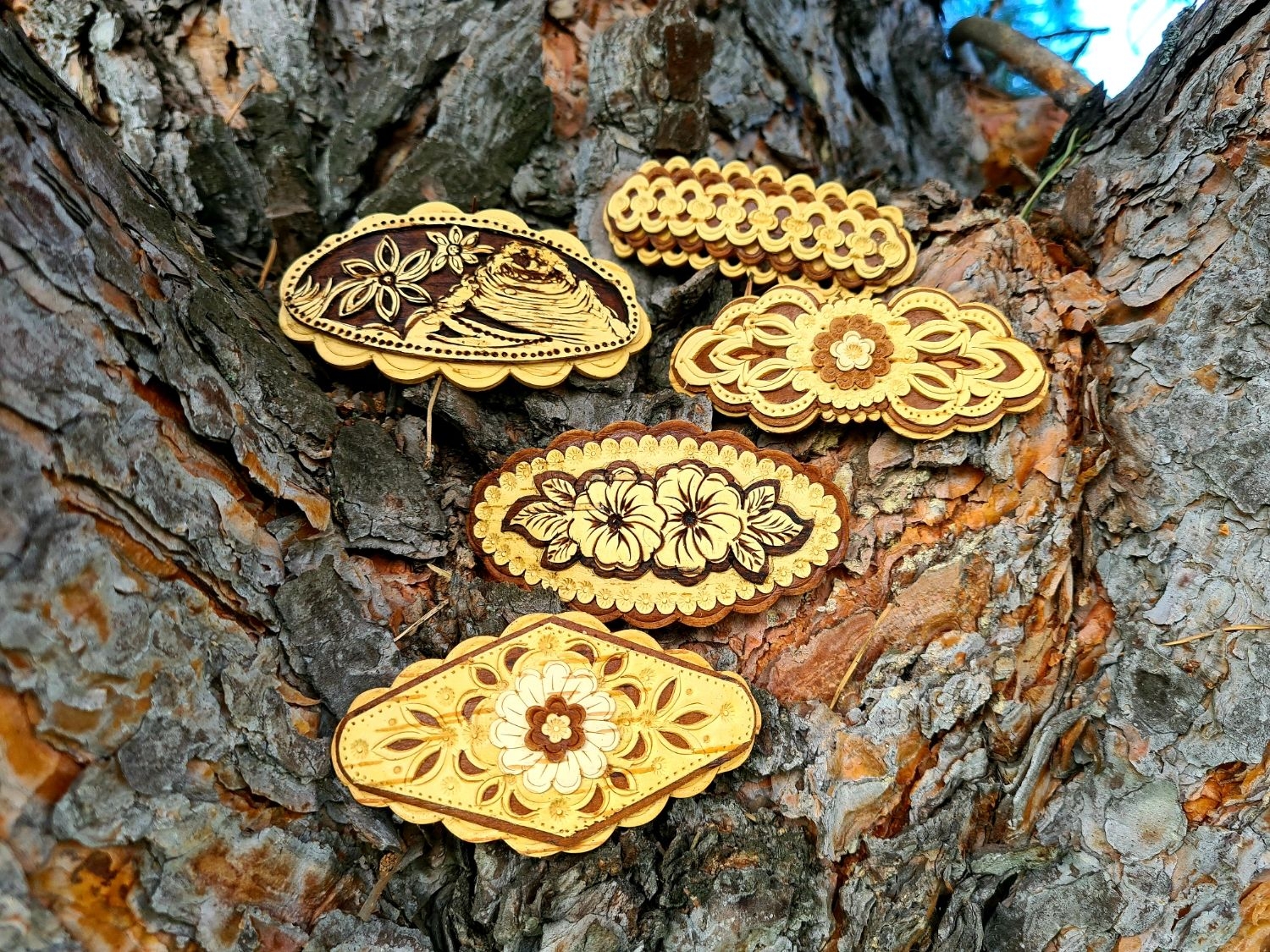 Резные с дерева заколки для волос