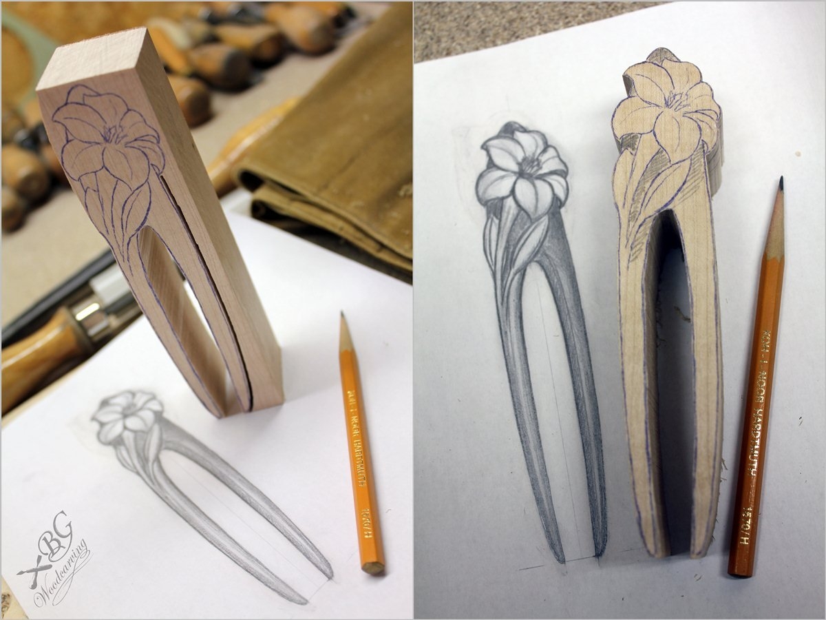 Резьба по дереву заколки