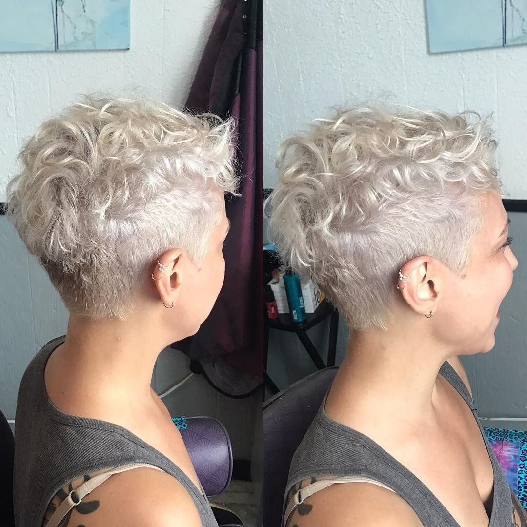 Кудрявая короткая стрижка с выбритым затылком