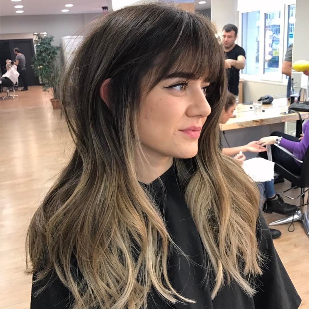 Омбре на темные волосы с челкой