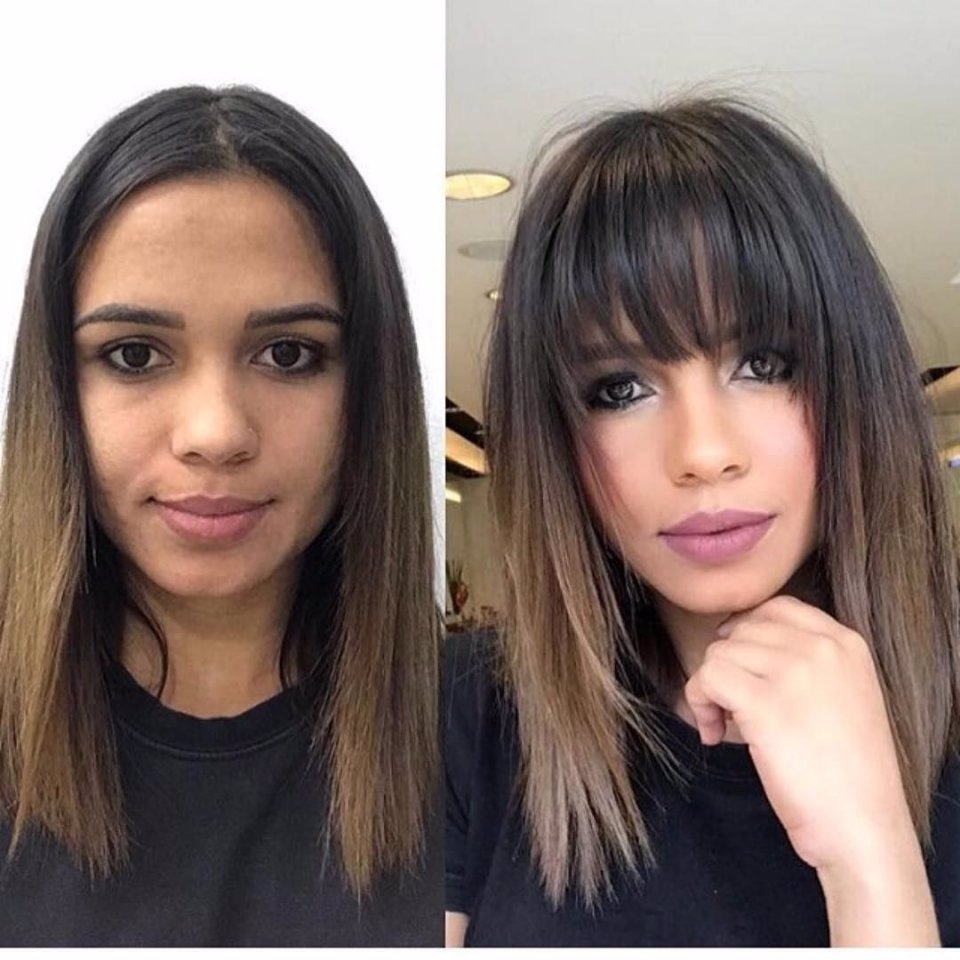 Челка до и после стрижки