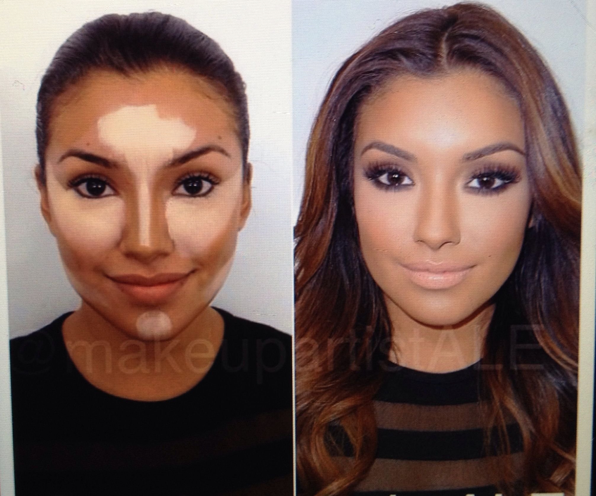 Контуринг на темные волосы с челкой