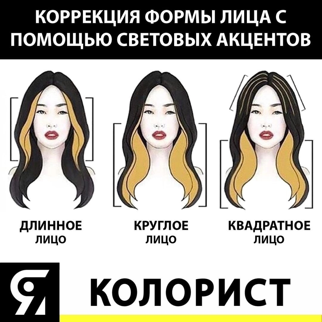 Коррекция формы лица с помощью цвета волос