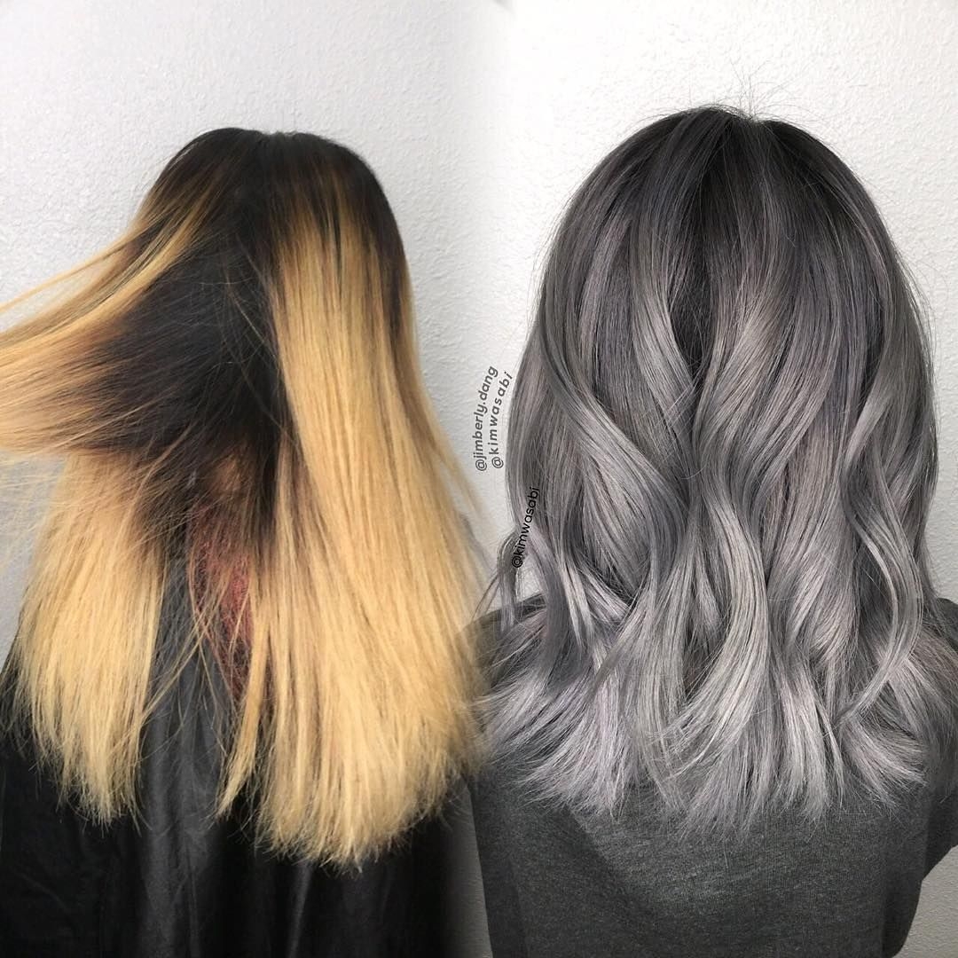 Пепельный цвет волос растяжка цвета