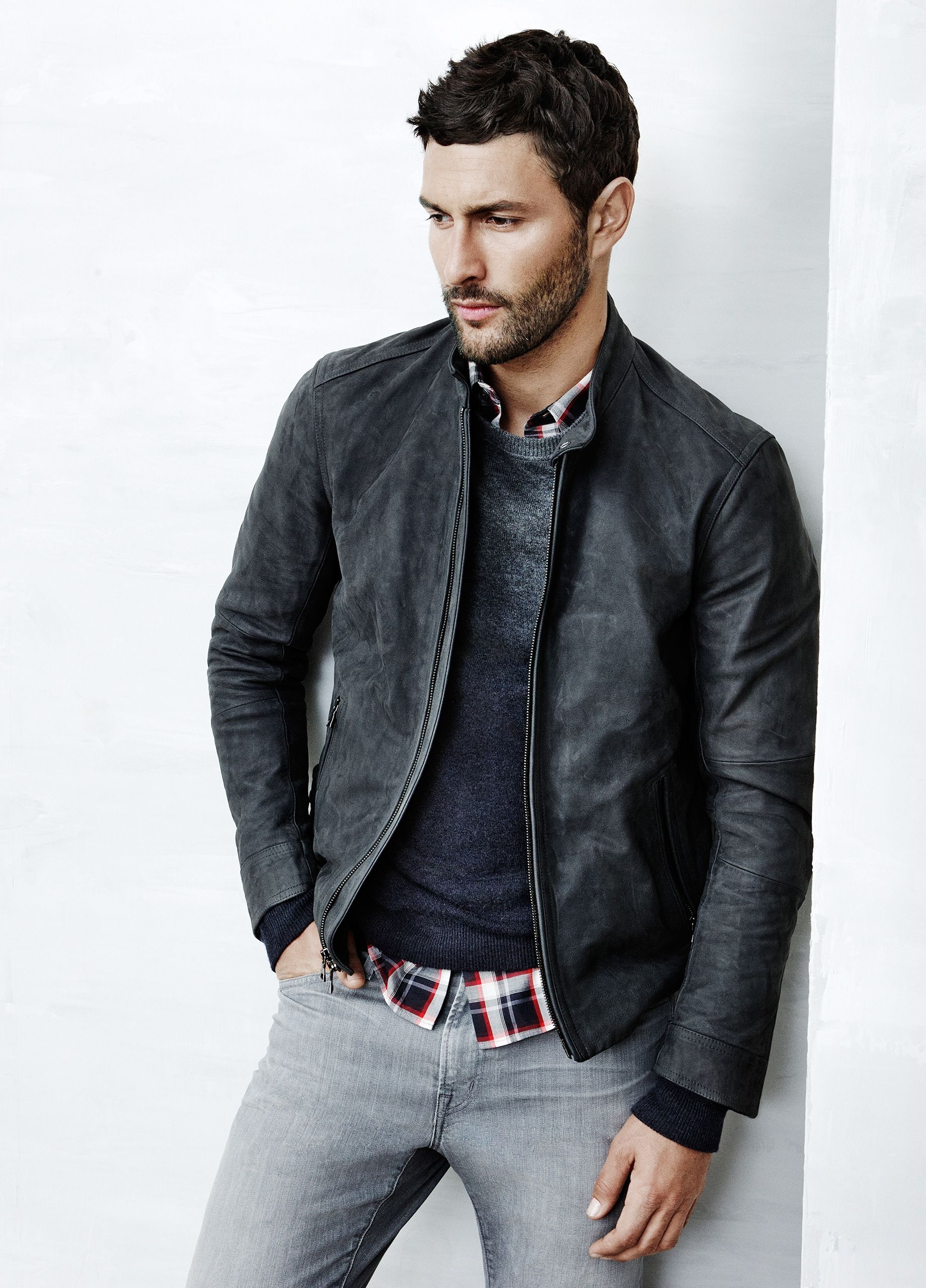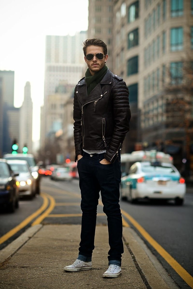 Джинсы и кожаная куртка мужская
