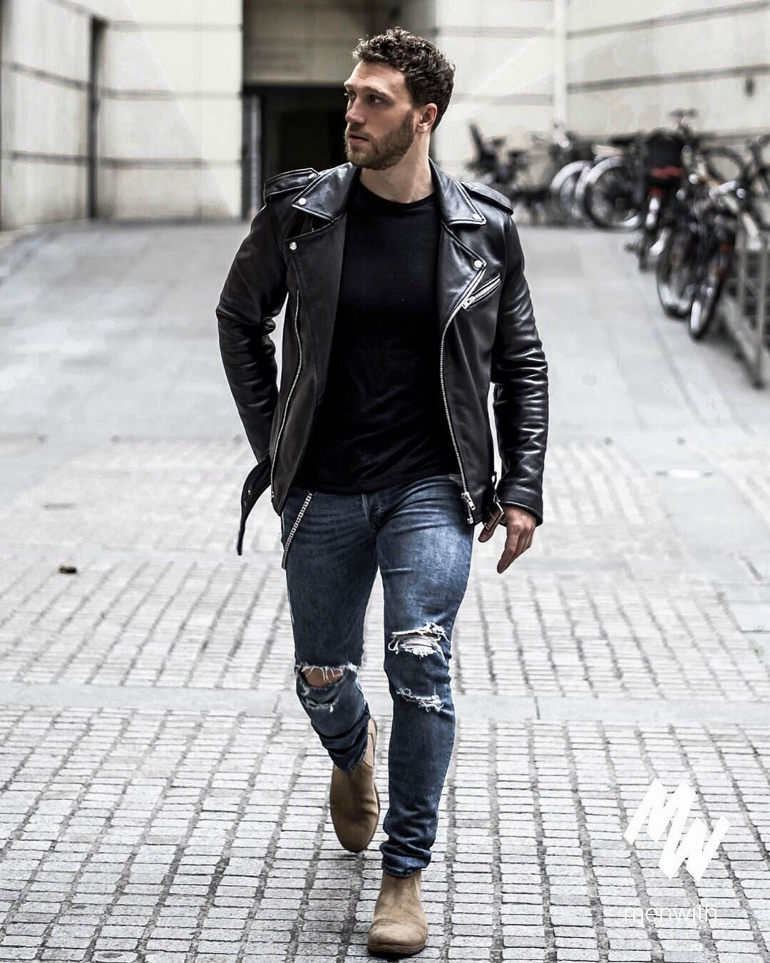 Косуха мужская и рваные джинсы