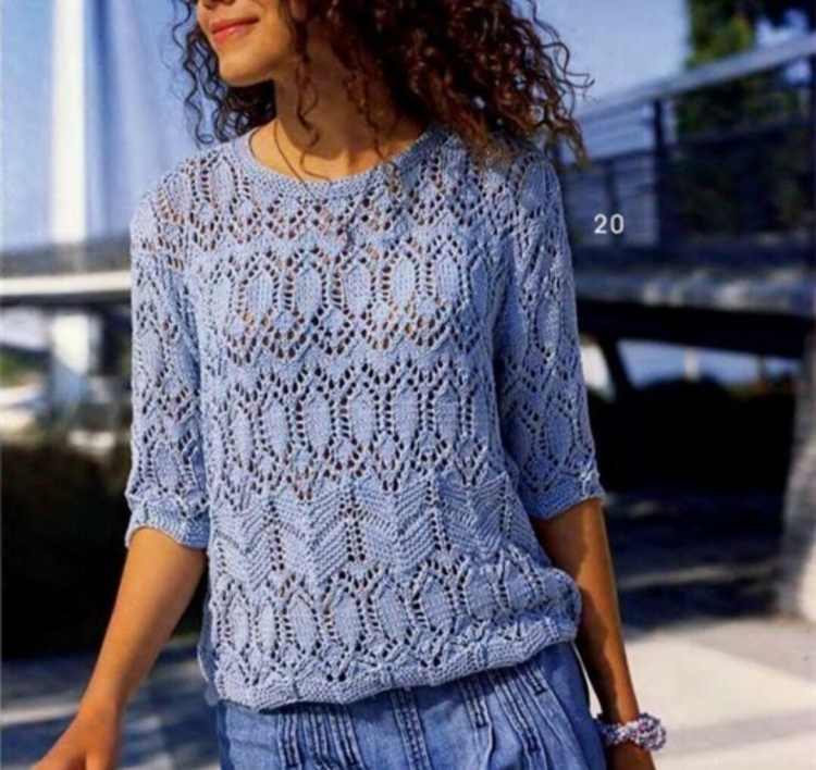 Пуловер листочками спицами
