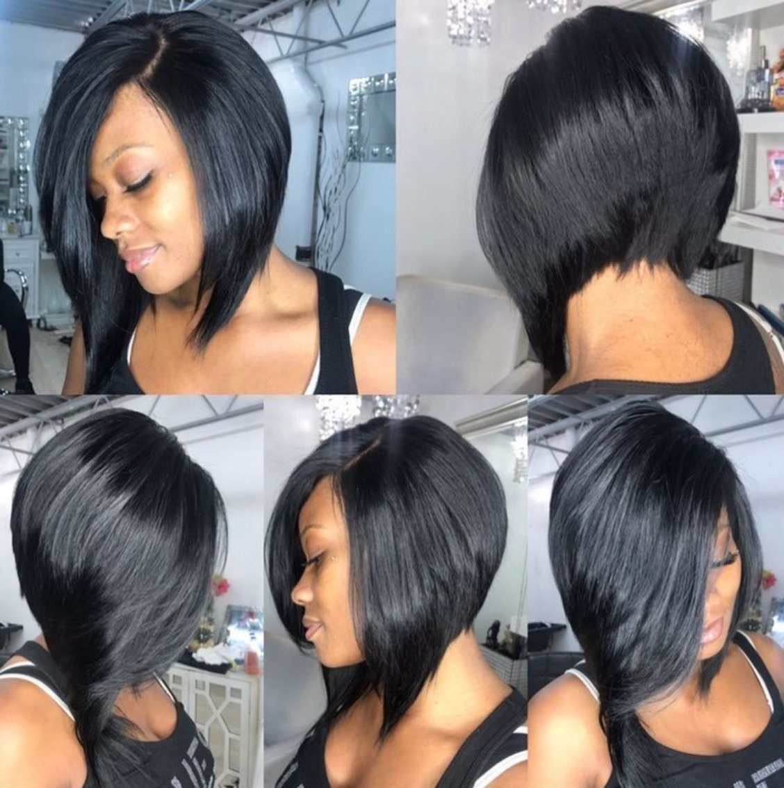 Косое каре на черные волосы