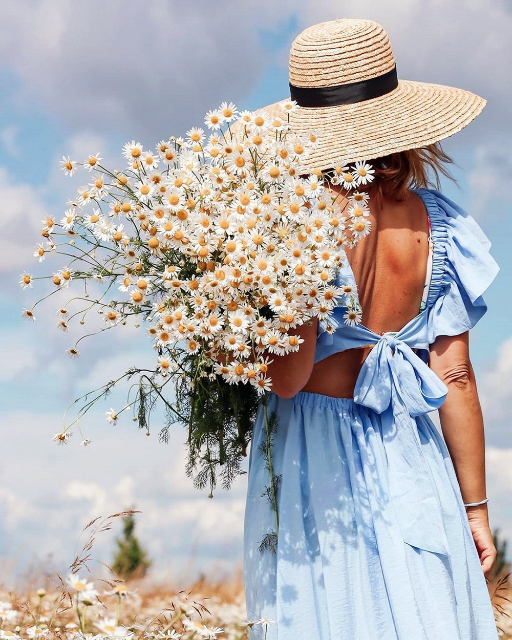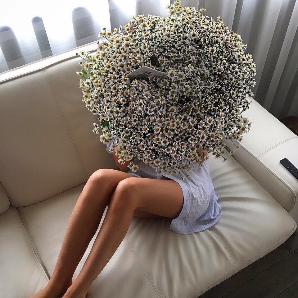 Девушка с букетом ромашек