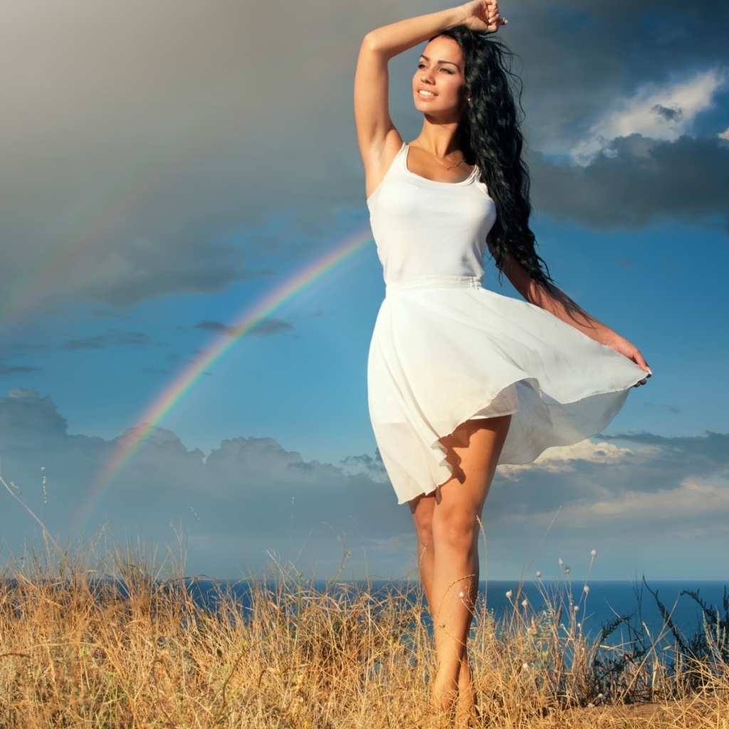 Брюнетка в белом платье