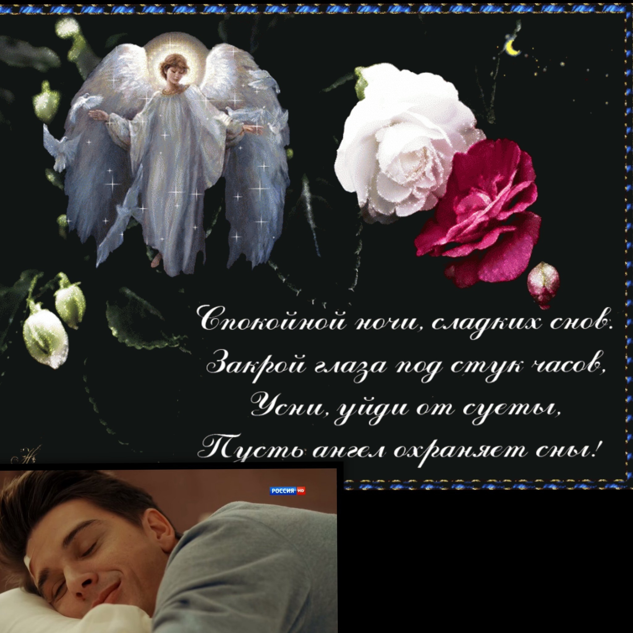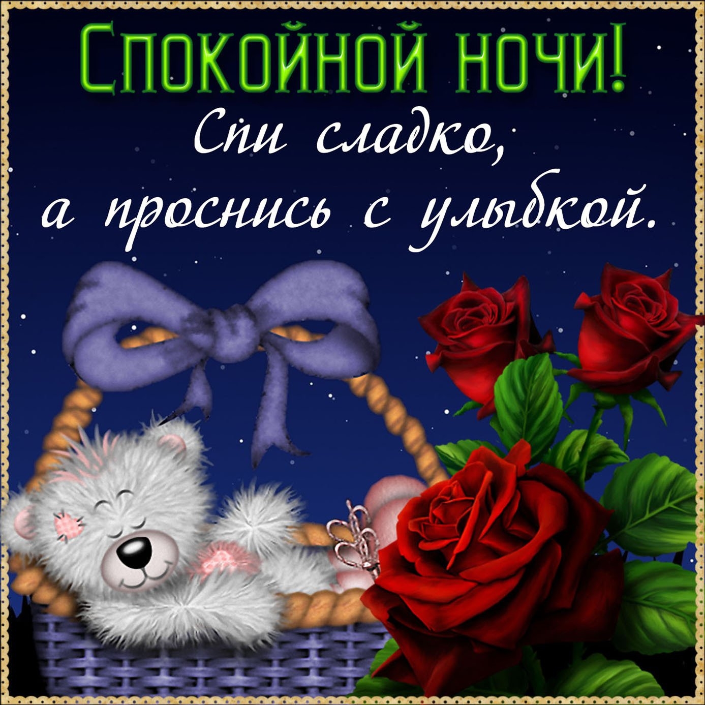 Спокойной ночи с розами и пожеланиями