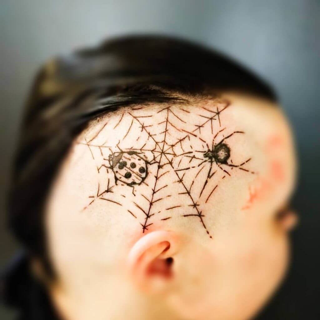 Тату паук с паутиной на голове