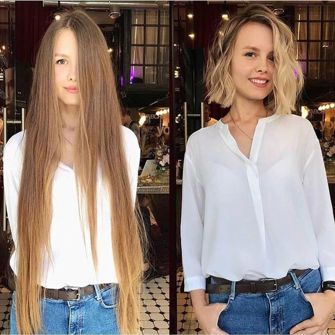 До и после стрижки длинных волос