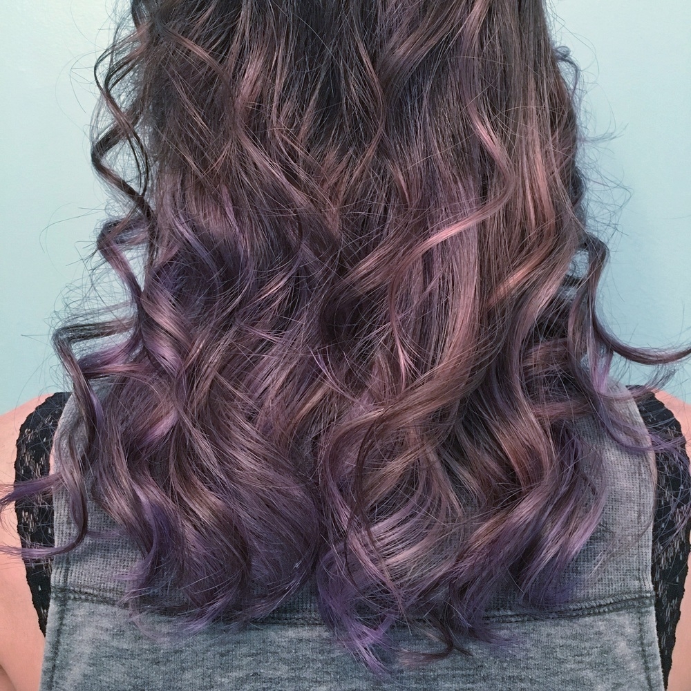 Балаяж на темные волосы фиолетовый