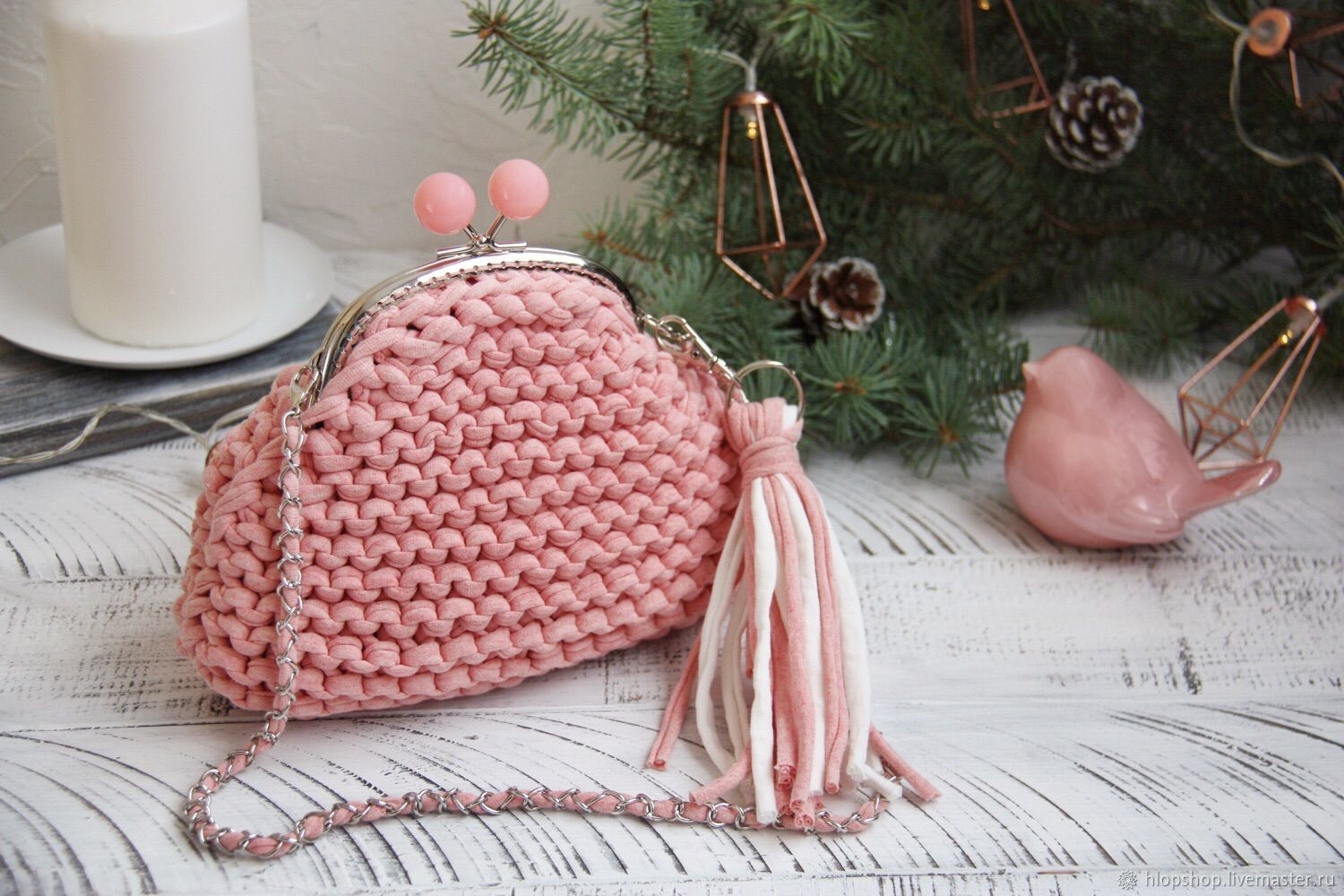Сумка из трикотажной пряжи с фермуаром