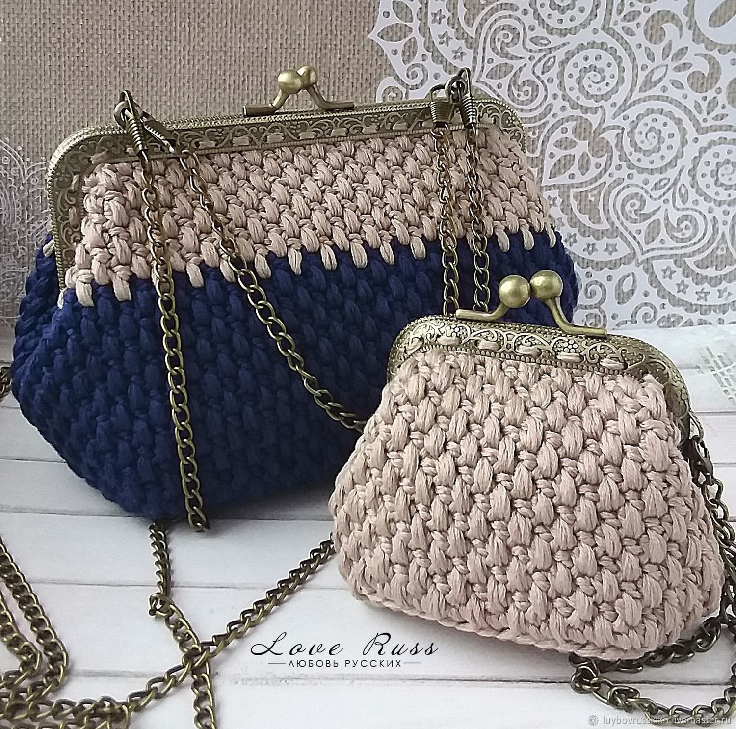 Вязаные сумки с фермуаром из трикотажной пряжи