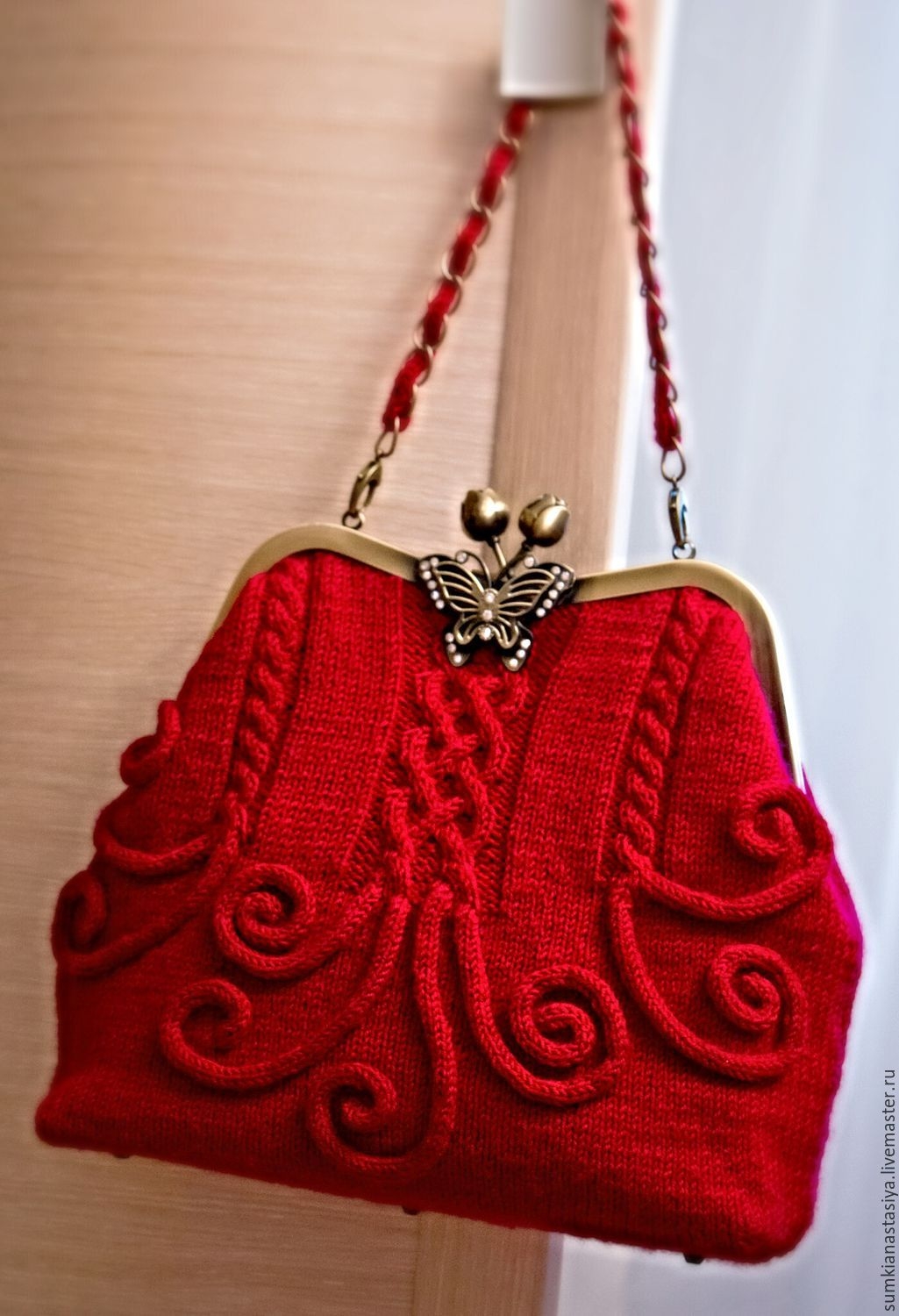 Красная вязаная сумка