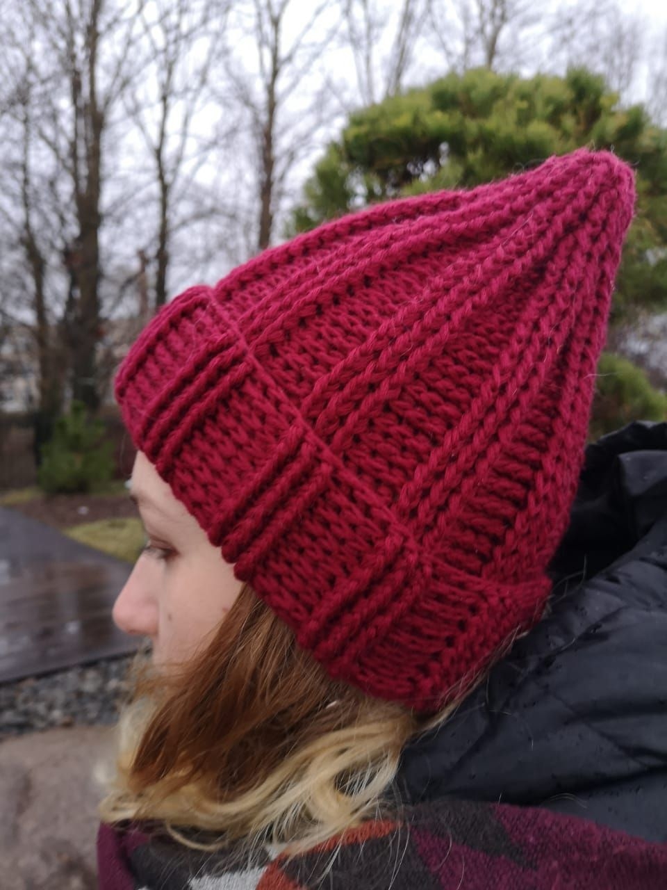 Вязаная шапка с острой макушкой