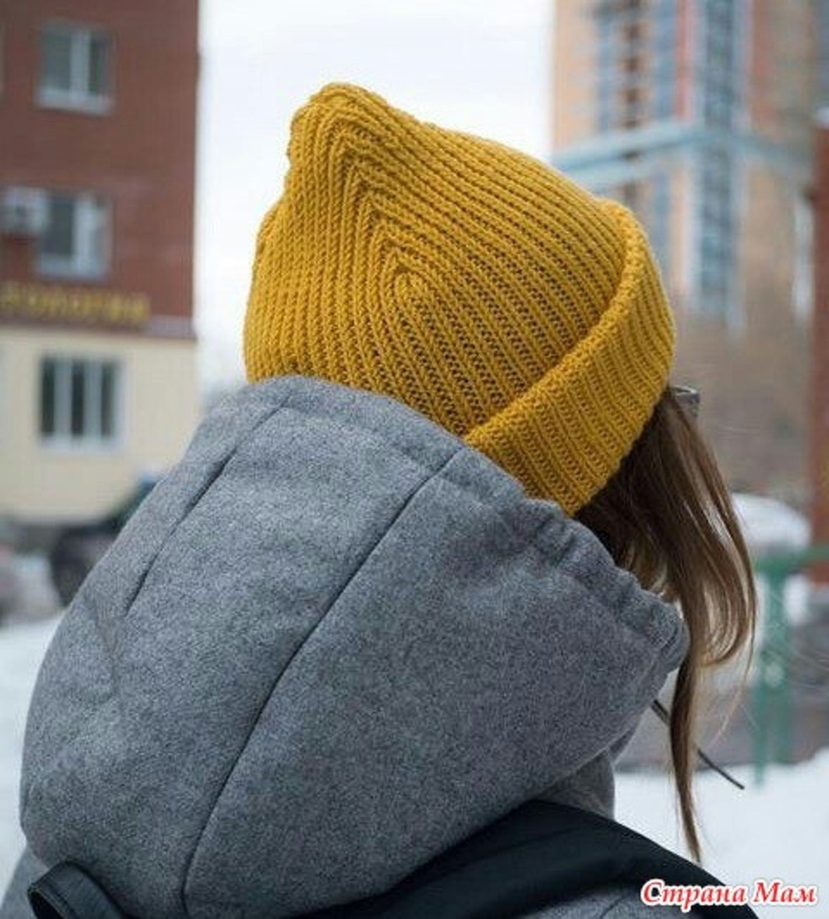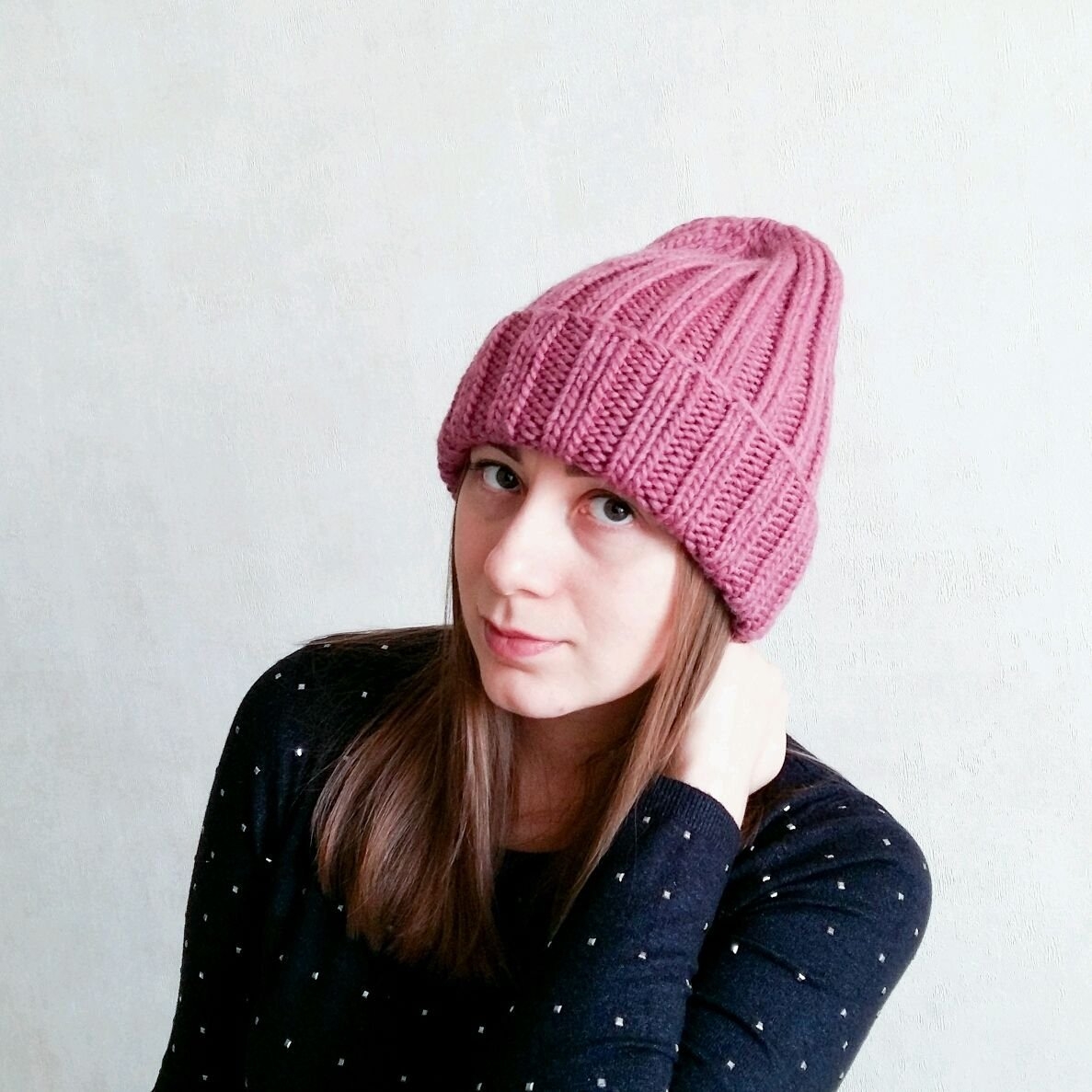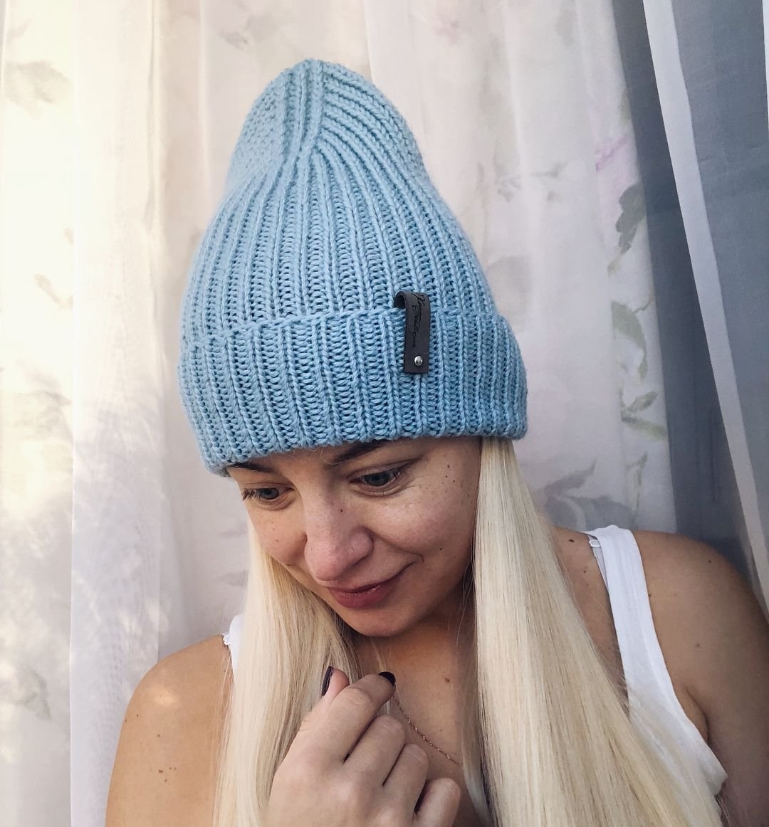 Шапка резинкой 2х2 с удлиненной макушкой