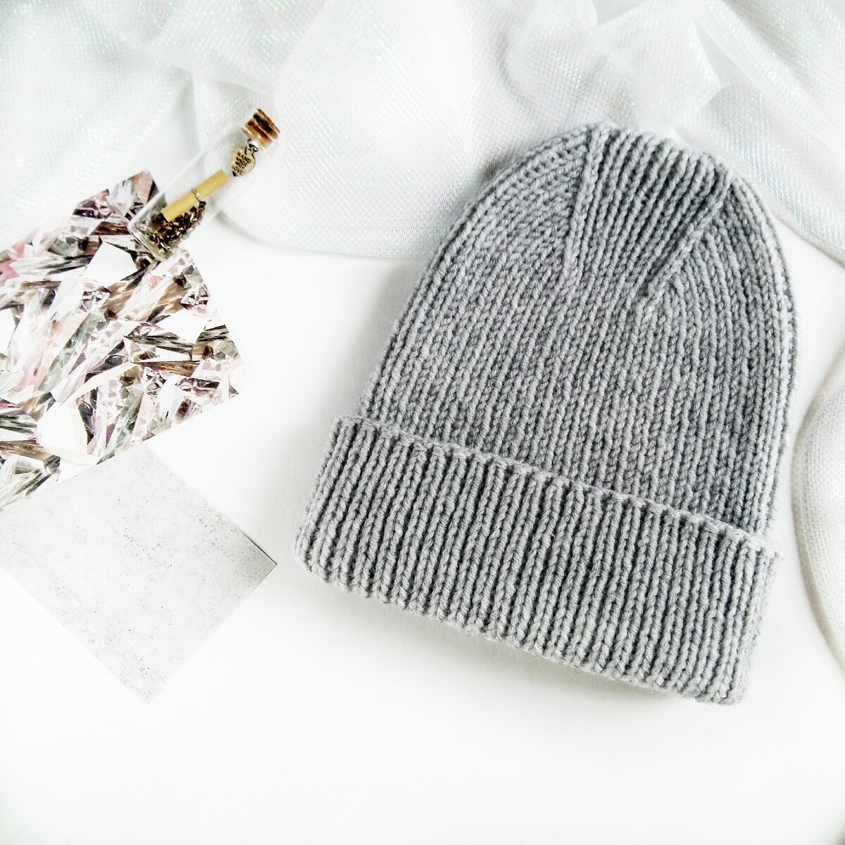 Шапка резинкой 2х2 с красивой макушкой