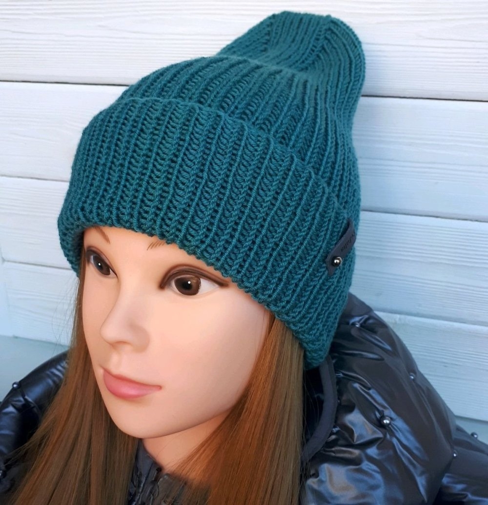 Шапка бини женская резинкой 2х2