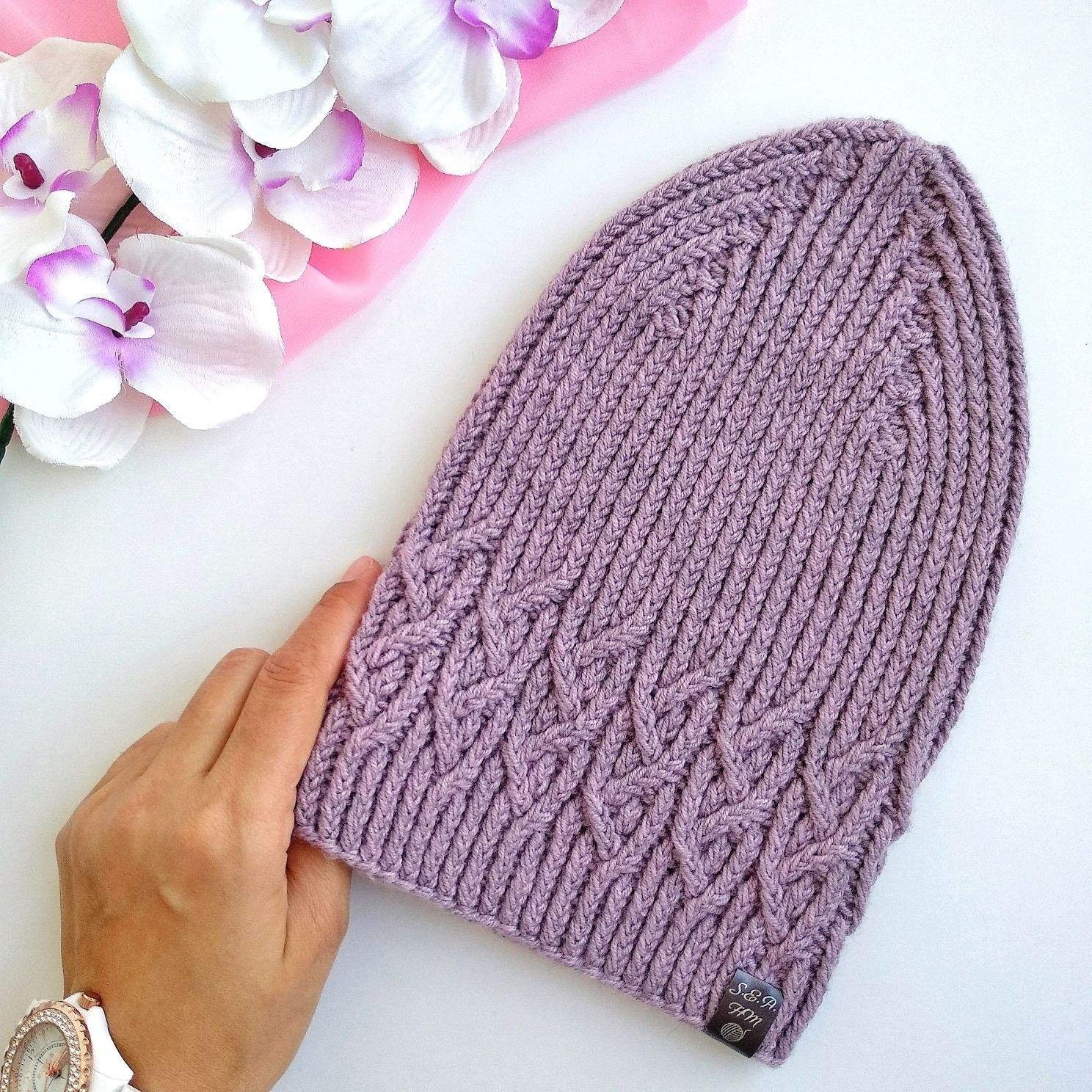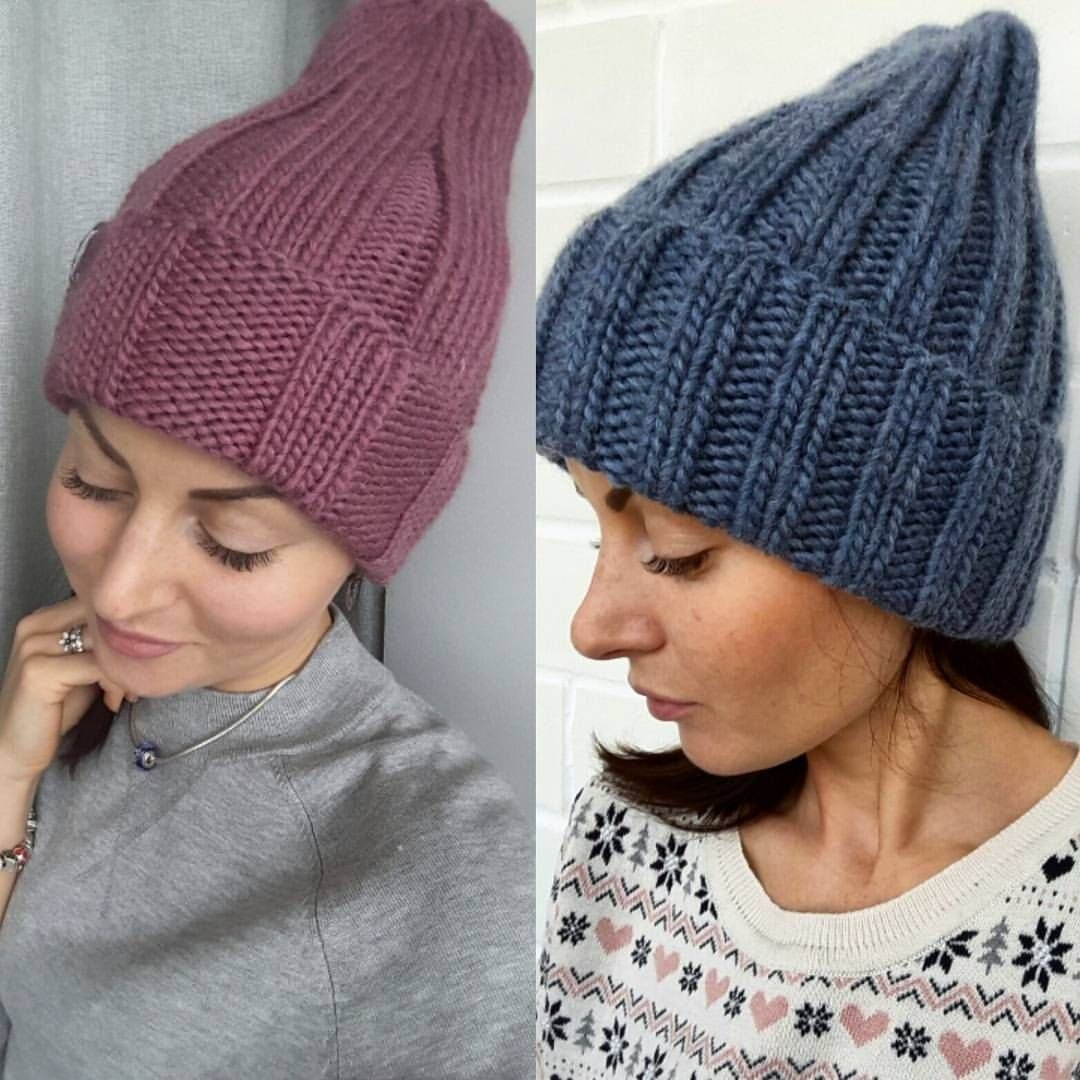 Модные вязаные шапки спицами с острой макушкой