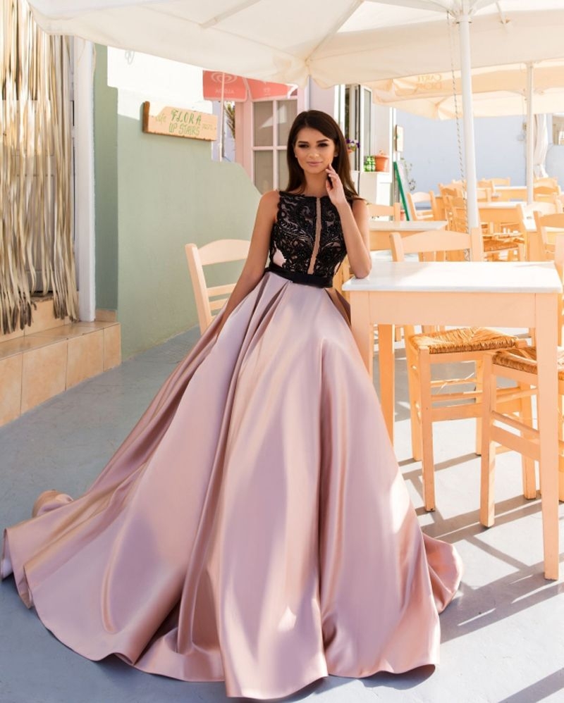 Платья с атласной юбкой в пол