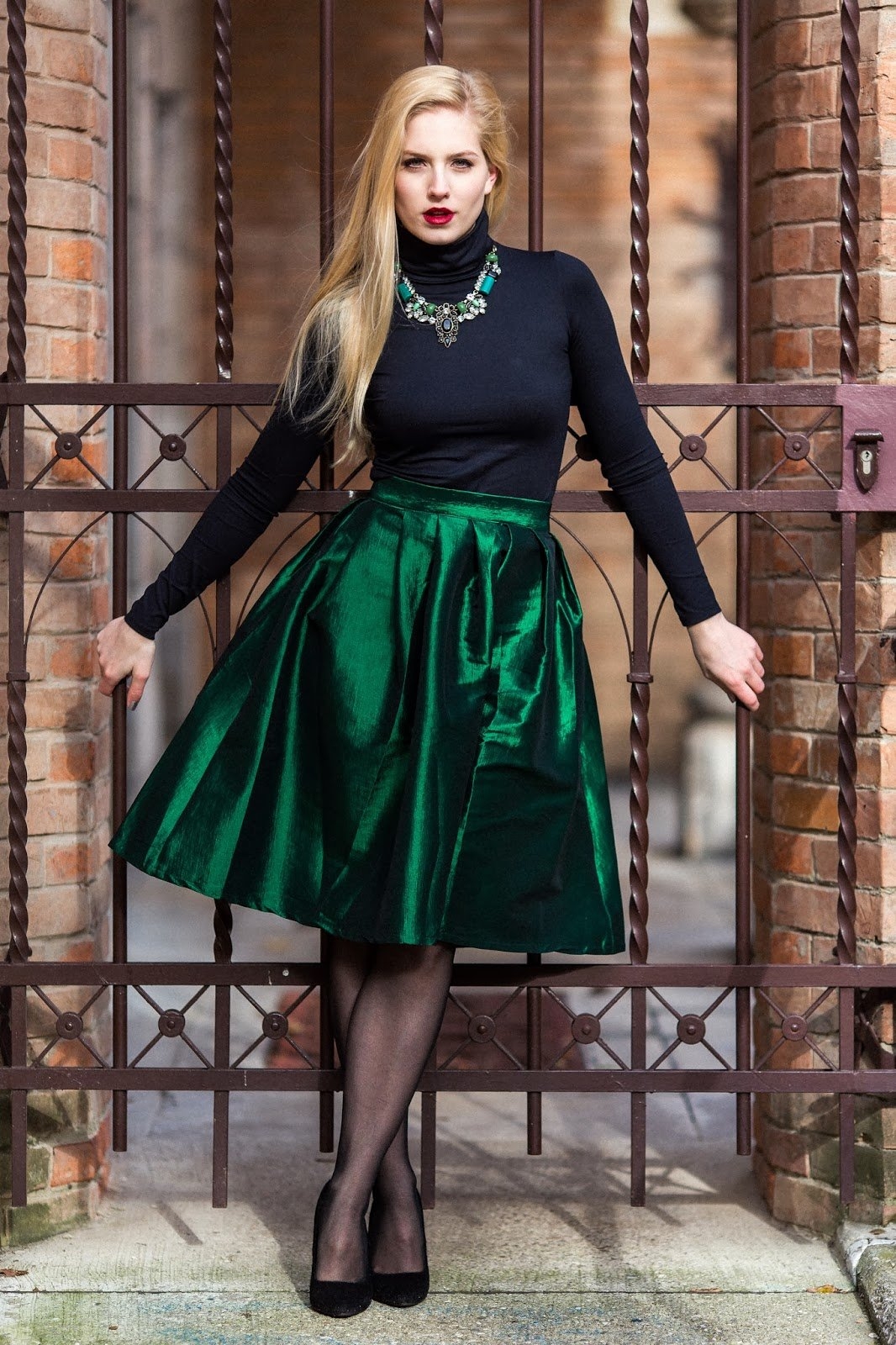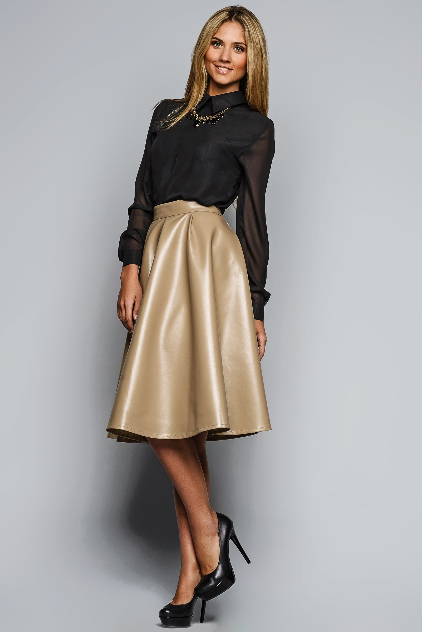 Образы с черной атласной юбкой