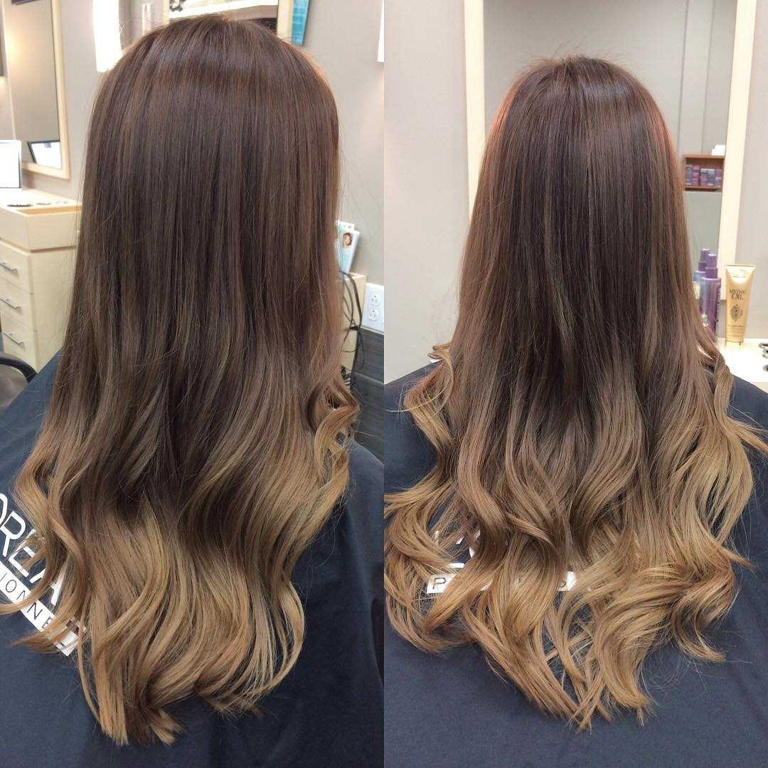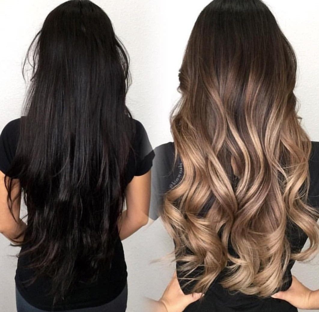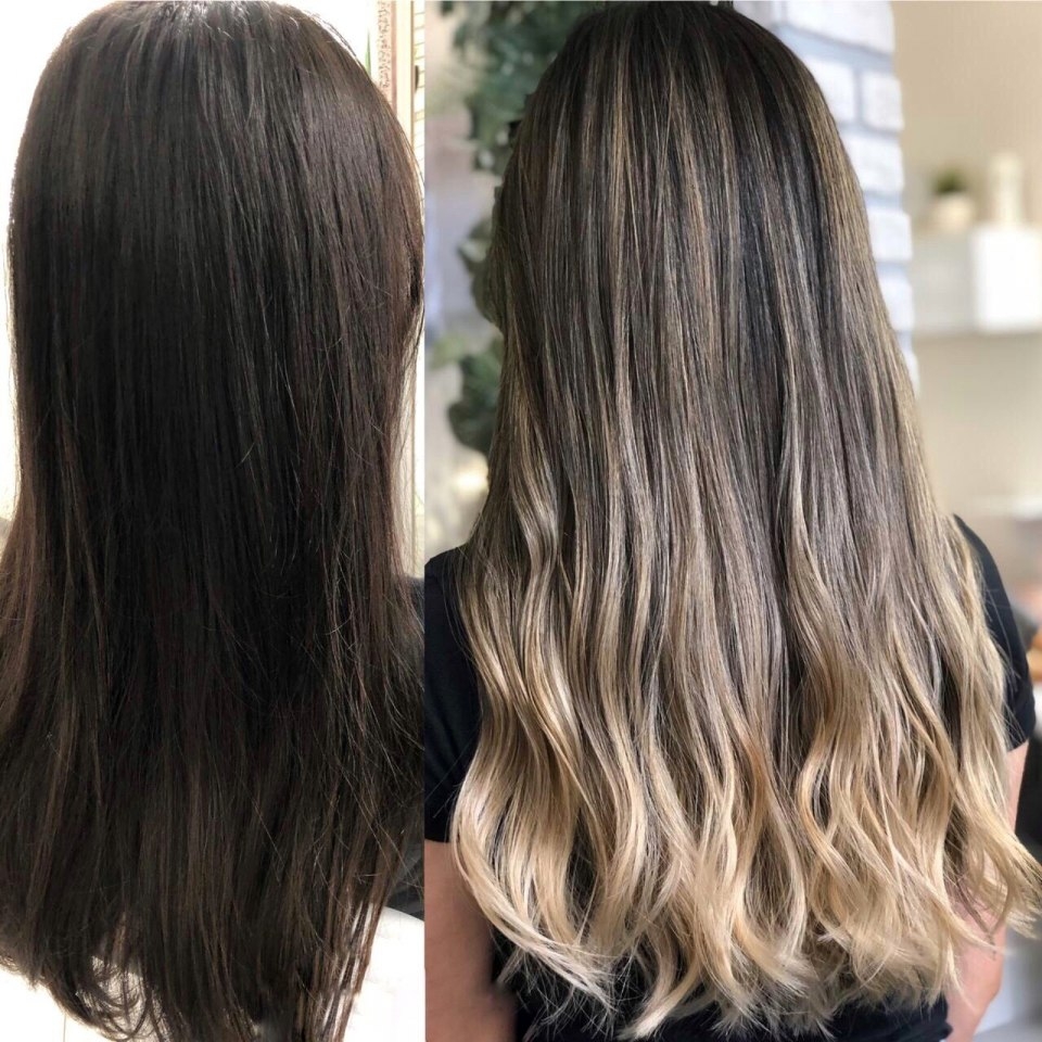 Омбре на тёмные волосы до и после